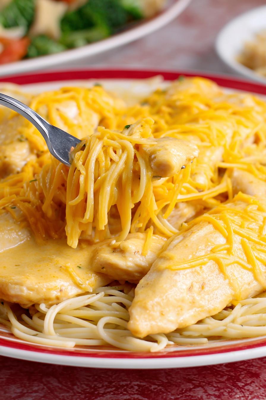 - To serve family style, arrange pasta in a 9×13 baking dish, place chicken on top, and pour all sauce over. For individual servings, place pasta on a plate, top with chicken, and spoon sauce over.