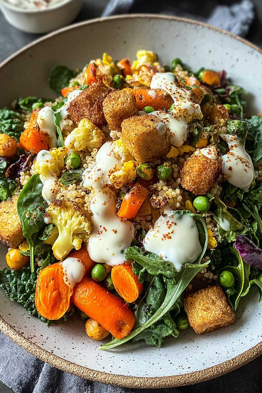 - Layer the quinoa as your base in bowls, then artfully add roasted sweet potatoes and chickpeas. Gently lay down fresh spinach and avocado slices on top, finishing with a generous drizzle of tahini yogurt sauce.