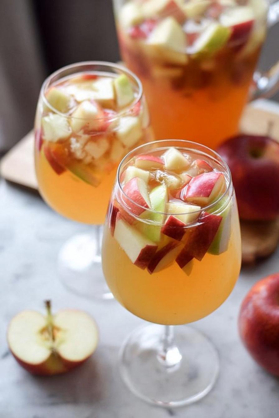 - Combine the dry white wine, brandy, triple sec and apple cider in a large pitcher.1 bottle dry white wine, 1 cup brandy, 0.5 cup triple sec, 64 ounce apple cider