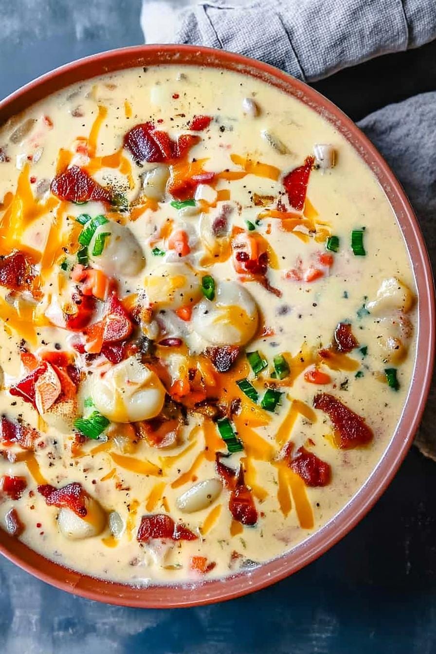 - Can I make Bacon Cheddar Gnocchi Soup ahead of time?: Yes—prepare through the roux stage, cool, then finish cooking gnocchi and cheese when serving.