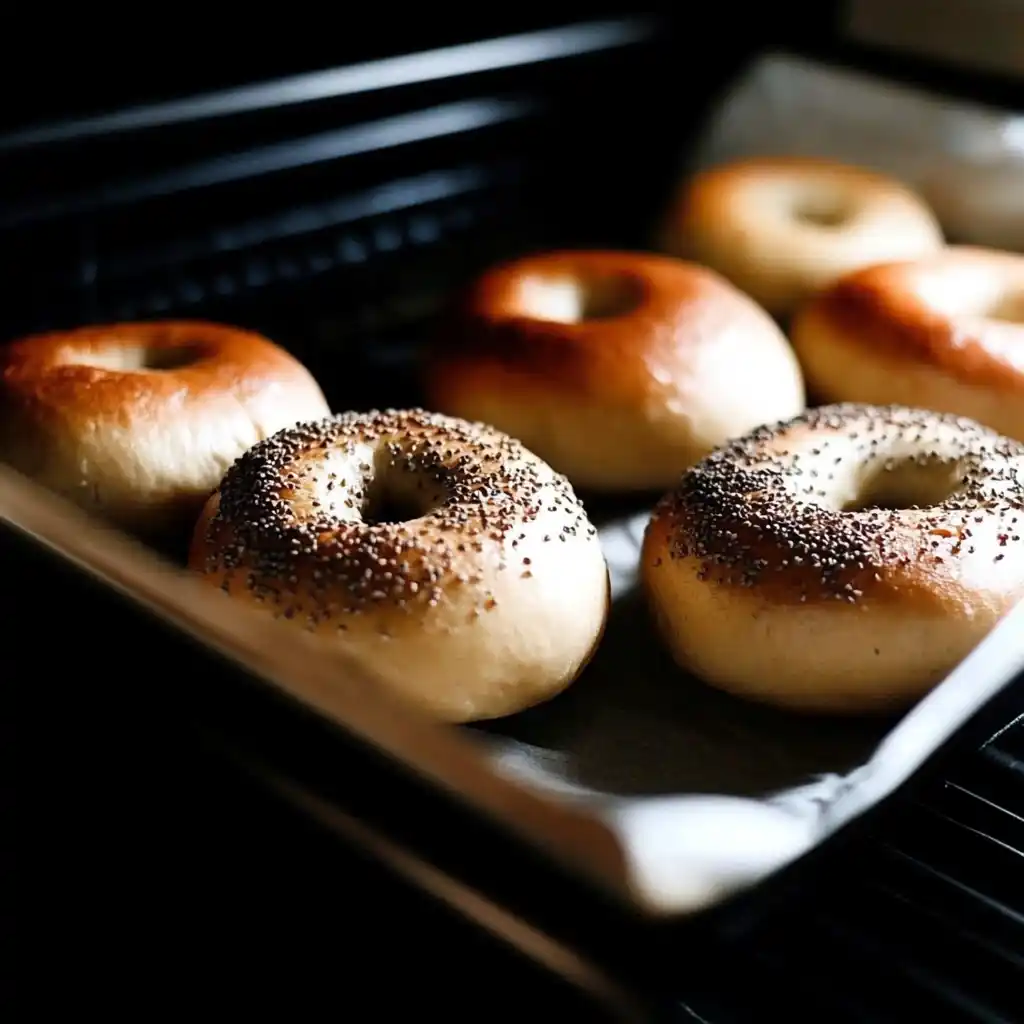 - Boil the bagels – Drop each bagel into simmering water for about 1 minute per side to create the chewy crust.