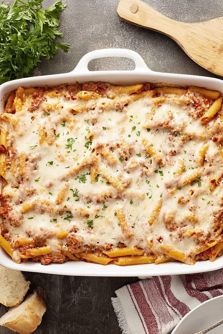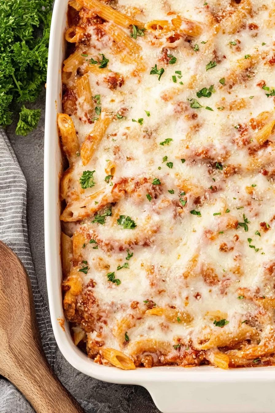 - Cheesy Baked Ziti – similar pasta dish with rich flavors that complement mostaccioli.