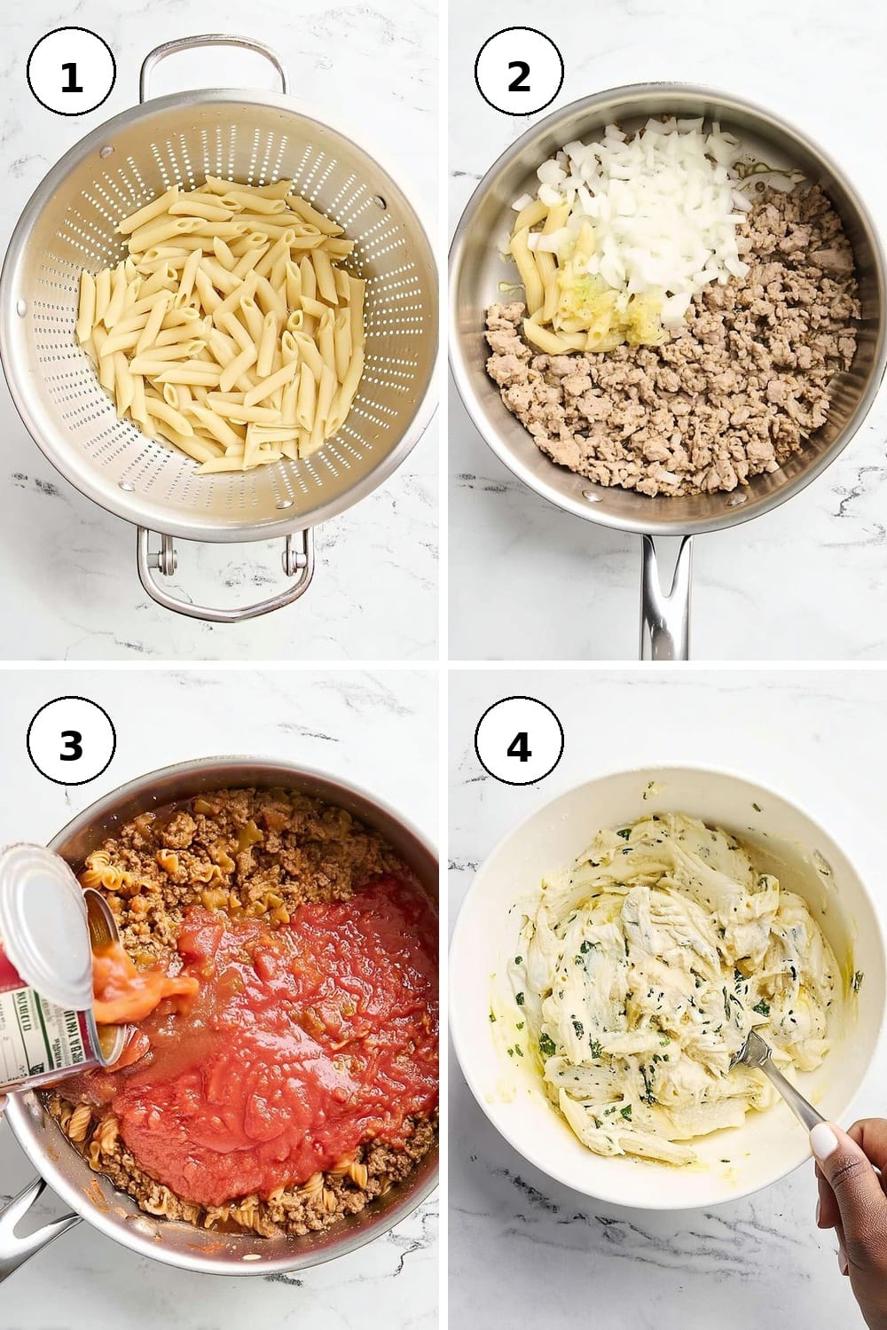 - Preheat the oven to 350°F. Bring a large pot of salted water to a boil, then add the pasta. Cook the pasta until they’re al dente, making sure not to overcook them. Drain in a colander and then rinse briefly with cool water and set aside.