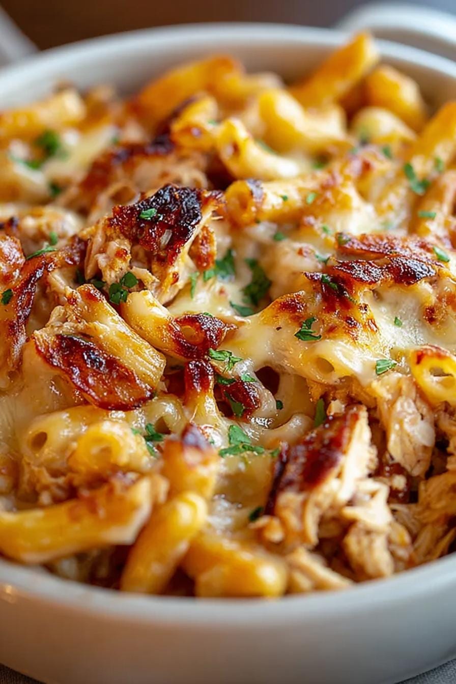 Mac and cheese is a universal comfort classic; adding BBQ-flavored chicken gives it a Southern-inspired twist that balances creamy, cheesy richness with smoky-sweet tang. This fusion is ideal for when you want familiar comfort with a lively flavor boost—great in cooler months or whenever you crave a hearty, satisfying meal.
