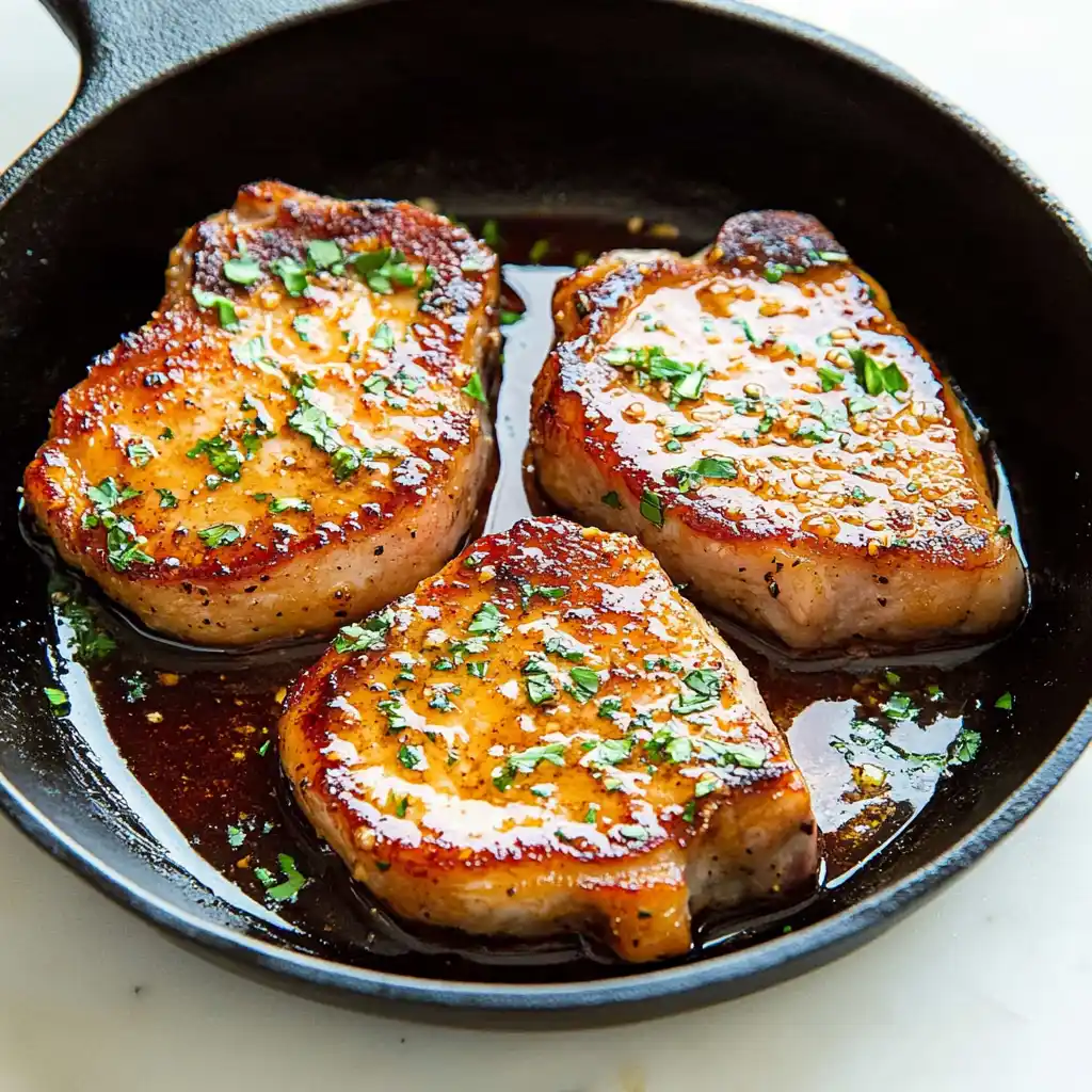 - Add pork chops and sear 3–4 minutes per side until golden brown.