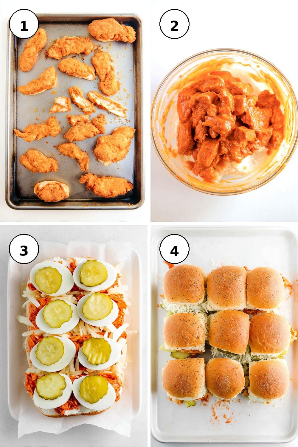 - Toss it up: Once the tenders are cooked, cut them in half so they fit nicely on the buns, then toss them in the sauce until every piece is fully coated and irresistible.