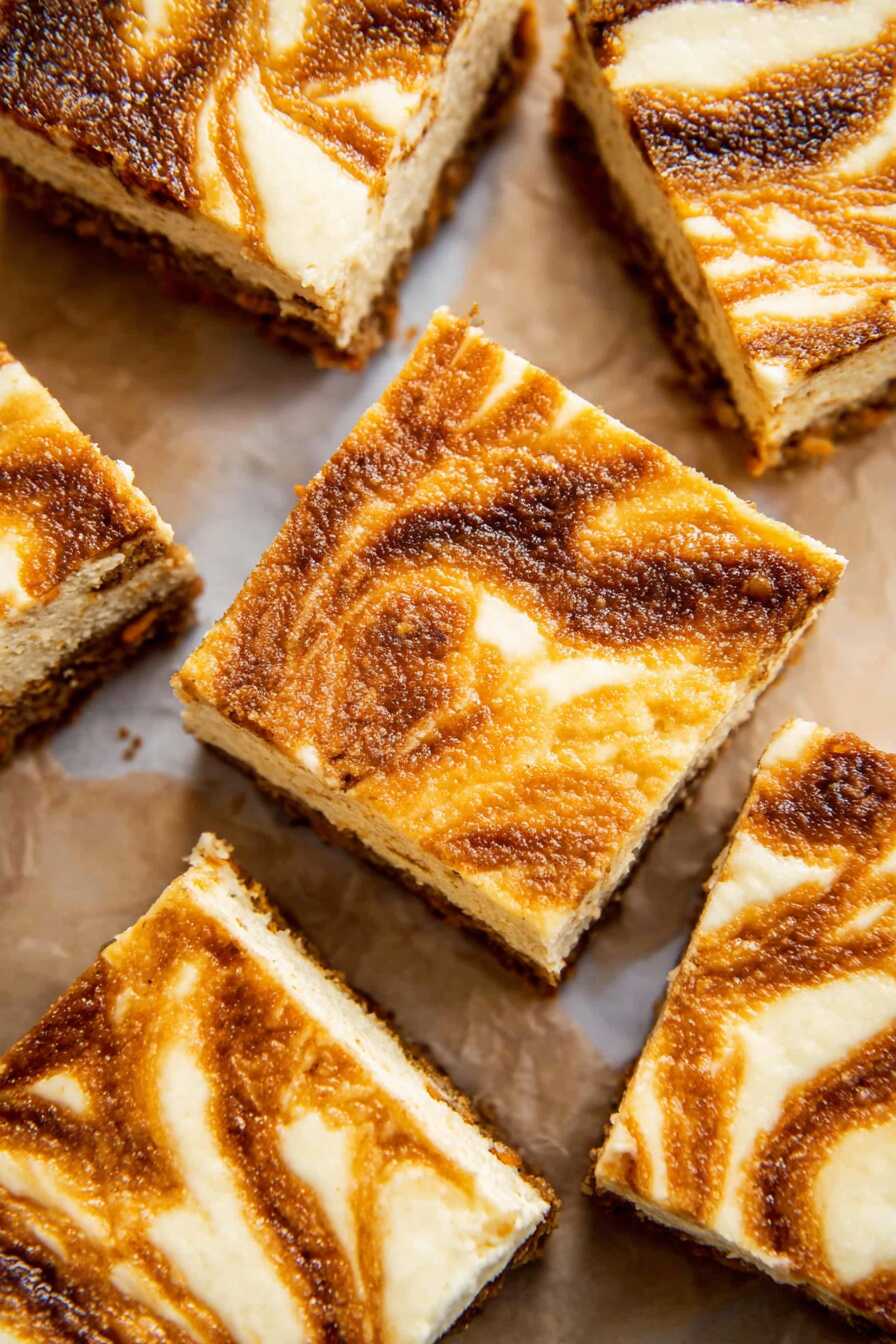 - Dollop and swirl the remaining carrot cake batter over the cheesecake, creating a visual masterpiece.