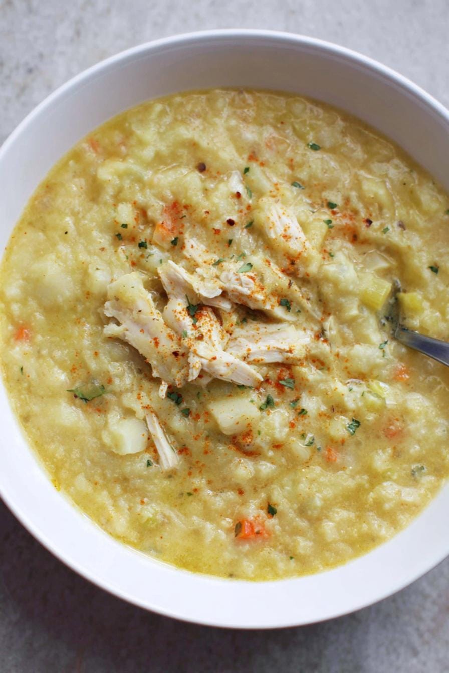 This Cauliflower Chicken Soup pairs beautifully with a crisp side salad or homemade crusty bread. For another delightful pairing, try it with my Carrot Cake Oatmeal Cookies.
