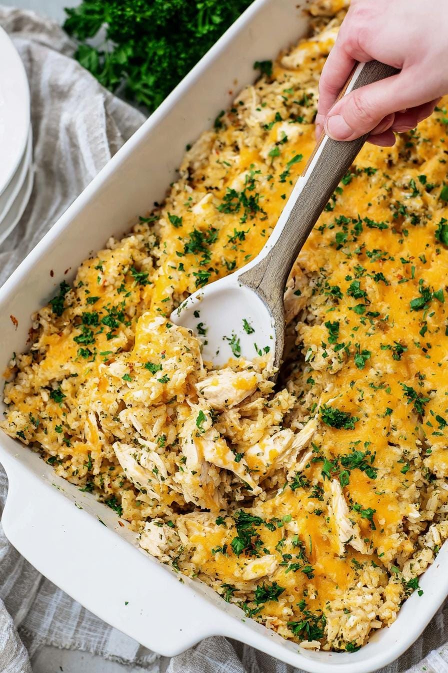 This Cheesy Chicken, Rice and Cauliflower Rice Casserole combines convenience with great taste. After testing it for several weeks, I’ve noted how quick it is to assemble, making it a busy weeknight winner. This casserole is a fantastic way to sneak some veggies into a family-friendly meal, especially during colder months when comfort food shines brightest.