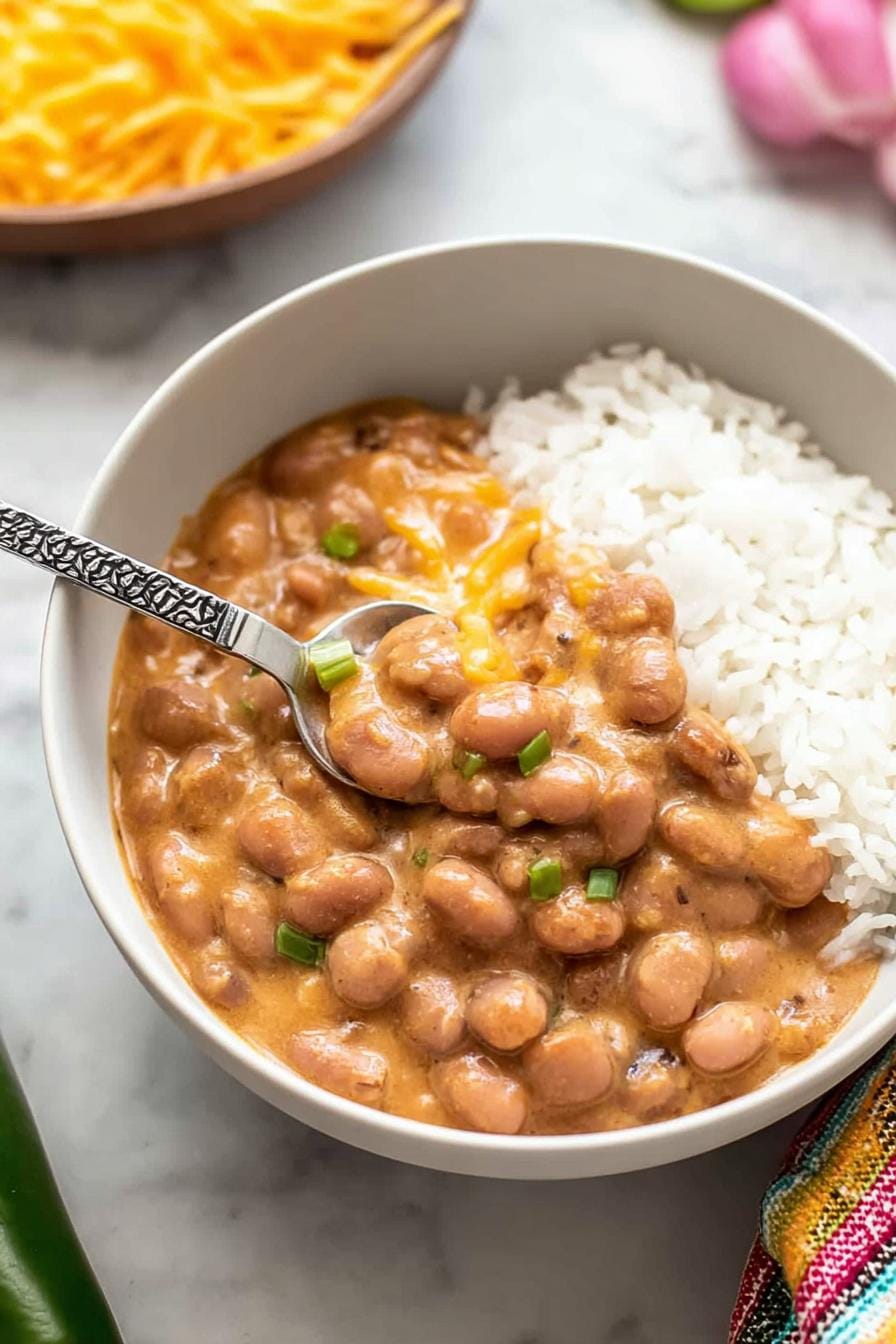 Cheesy Pinto Beans are delightful served with white rice or alongside crispy tortilla chips. Pair with my Baked Stuffed Salmon for a complete meal that brightens any dinner table!