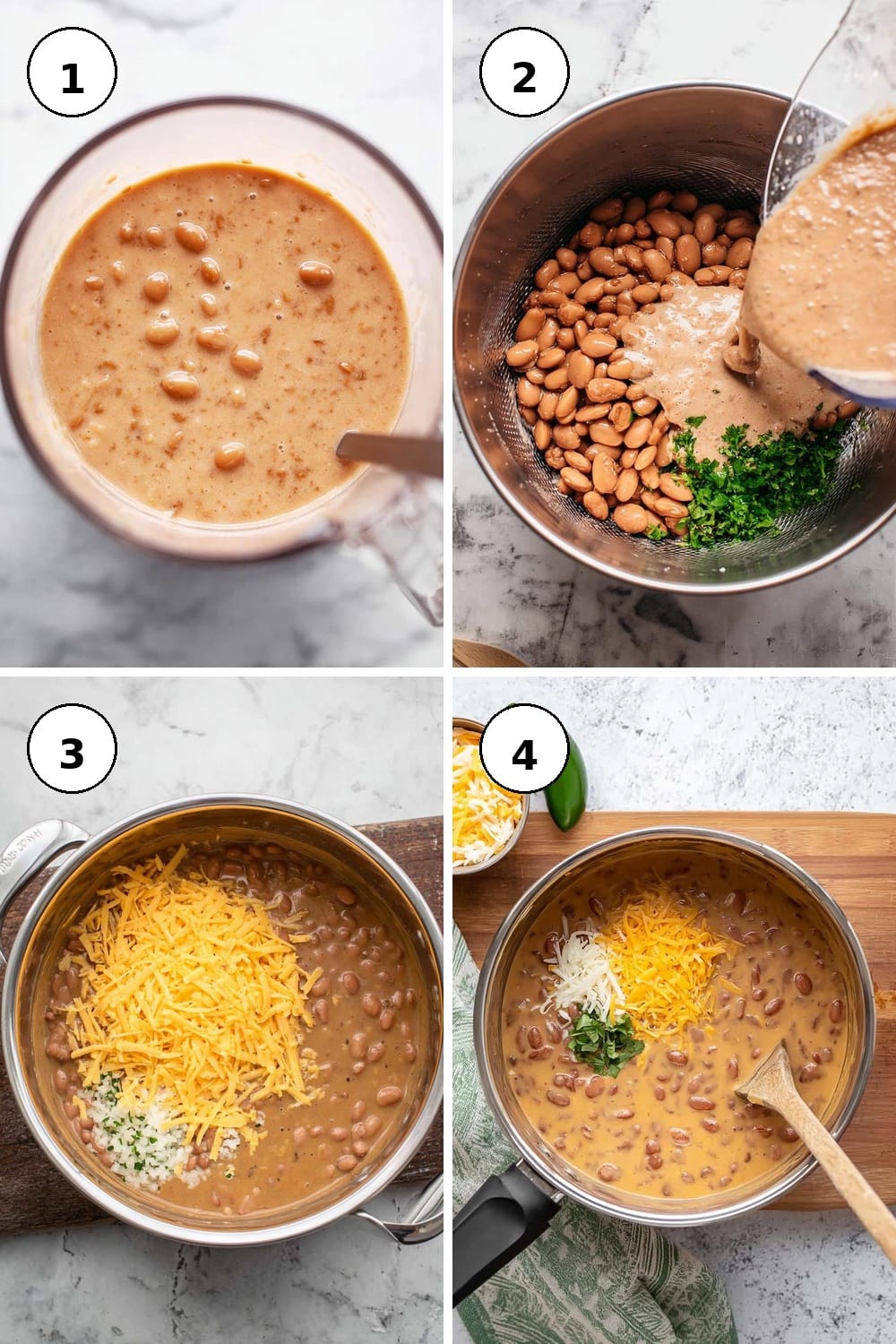 - Add one can of pinto beans to a blender, with the liquid in the can, and purée until smooth.
