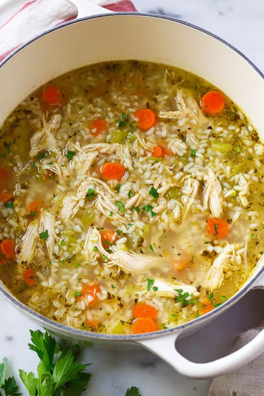 - What’s the best rice for Chicken and Rice Soup? Long-grain white rice stays firm and soaks up flavor without getting gummy.