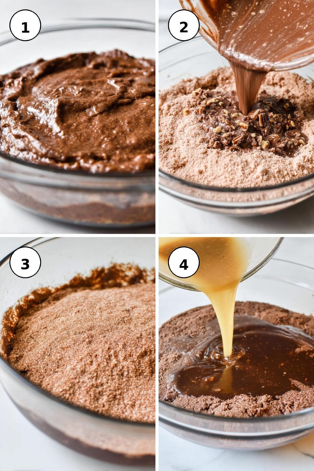 - Whisk 1/4 cup of caramel sauce into boiling water, and gently pour it over the top without stirring. This layer will meld beautifully while baking, forming a delicious sauce.