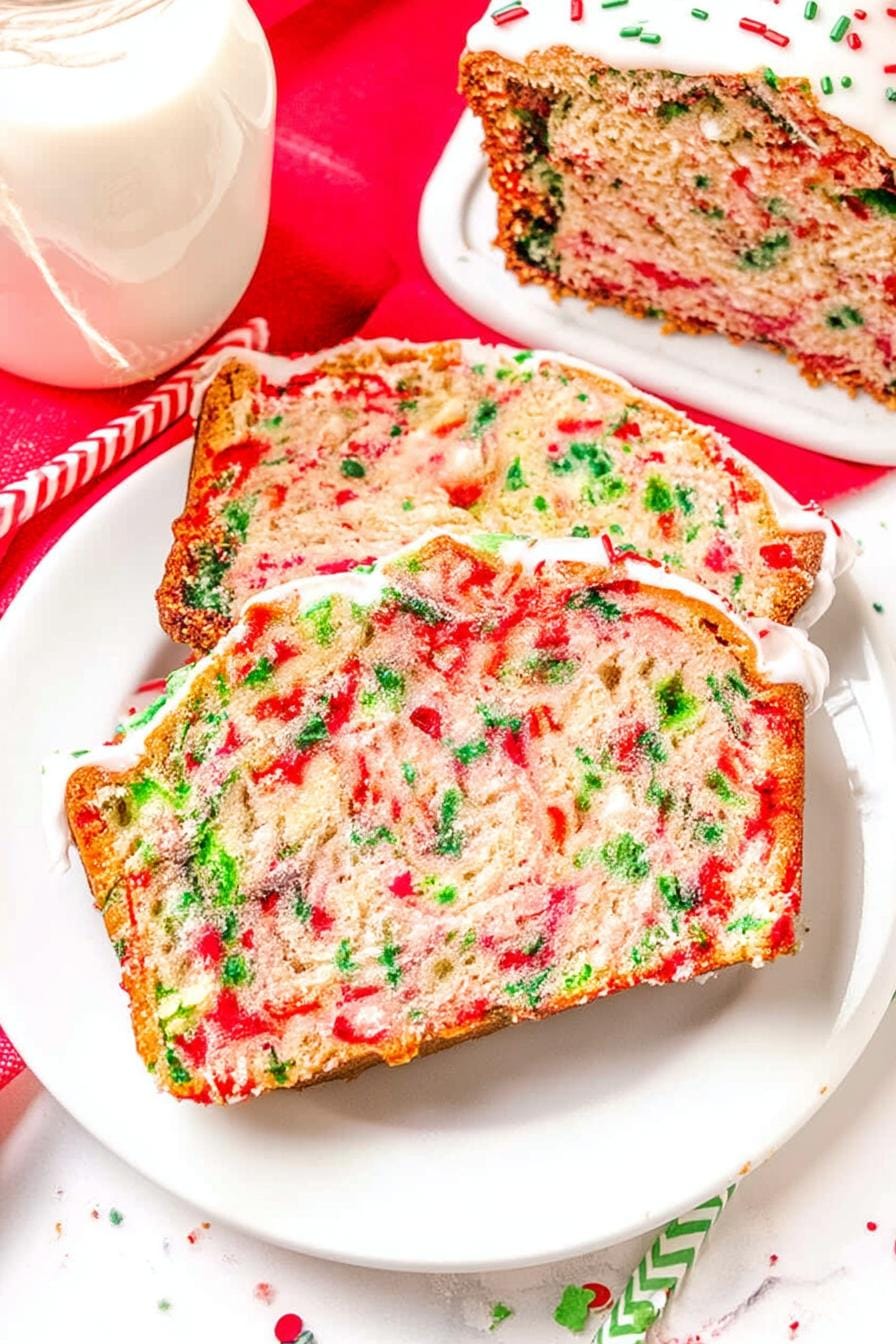 - What’s the best pan size for Christmas Funfetti Bread Recipe? A 9×5-inch loaf pan gives you the ideal rise and slice thickness.