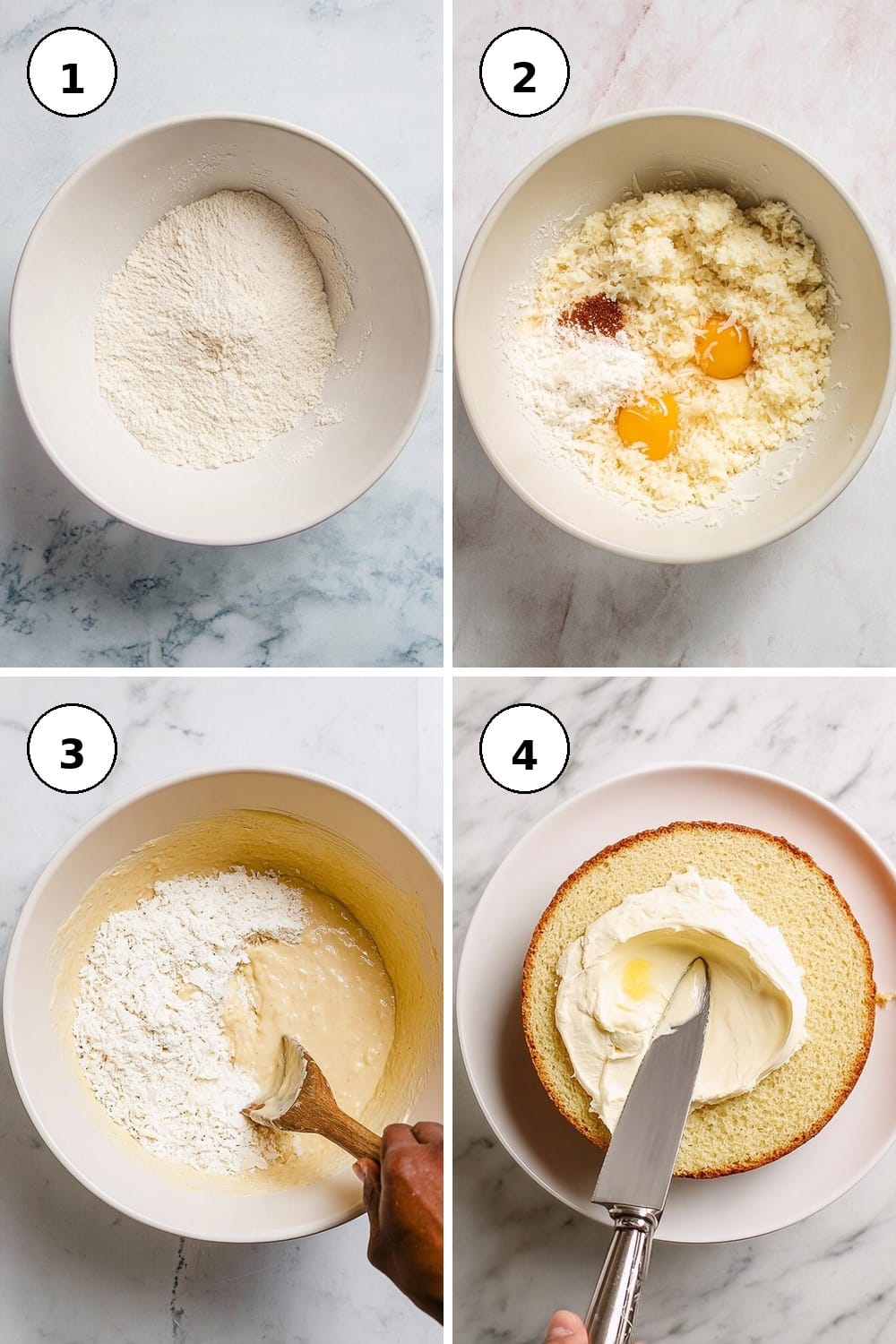 - Gradually mix the dry ingredients into the wet ingredients. To prevent lumps, I prefer sifting the dry ingredients. This step can lighten the cake crumb, making it airy and delicate.