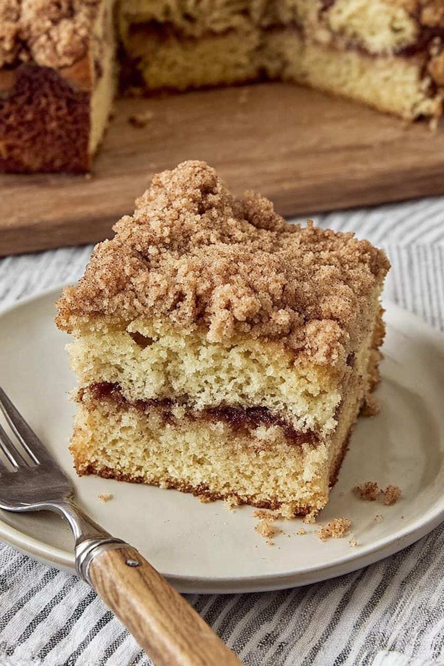 This Coffee Cake can be stored in the fridge for up to 5 days. For longer storage, wrap it tightly and freeze for up to 3 months. When ready to enjoy, simply reheat in the oven for about 10-15 minutes or microwave for about 30 seconds to restore its fluffy texture. During my tests, I found that freezing actually enhances its flavors, making it even more delectable when thawed!