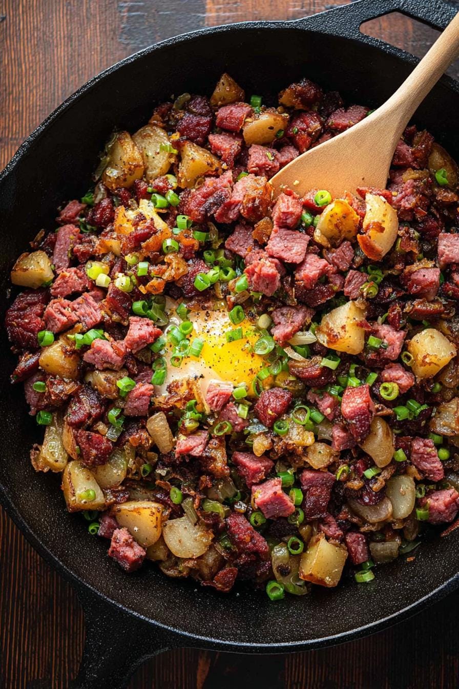 Warm, crispy, and deeply savory, this corned beef hash turns leftover brisket or canned corned beef into a weekday hero. Golden potatoes, sweet onions, and savory, slightly salty corned beef caramelize together in a skillet to create crunchy edges and tender pockets — perfect topped with a runny fried egg and a dash of hot sauce.