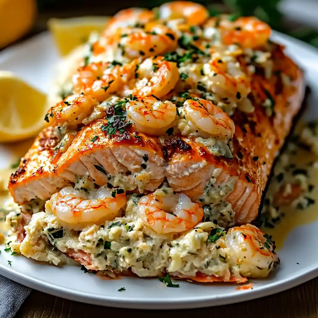 - Salmon Fillet: The rich and flaky base that holds the creamy seafood stuffing.