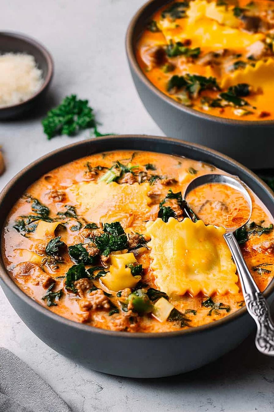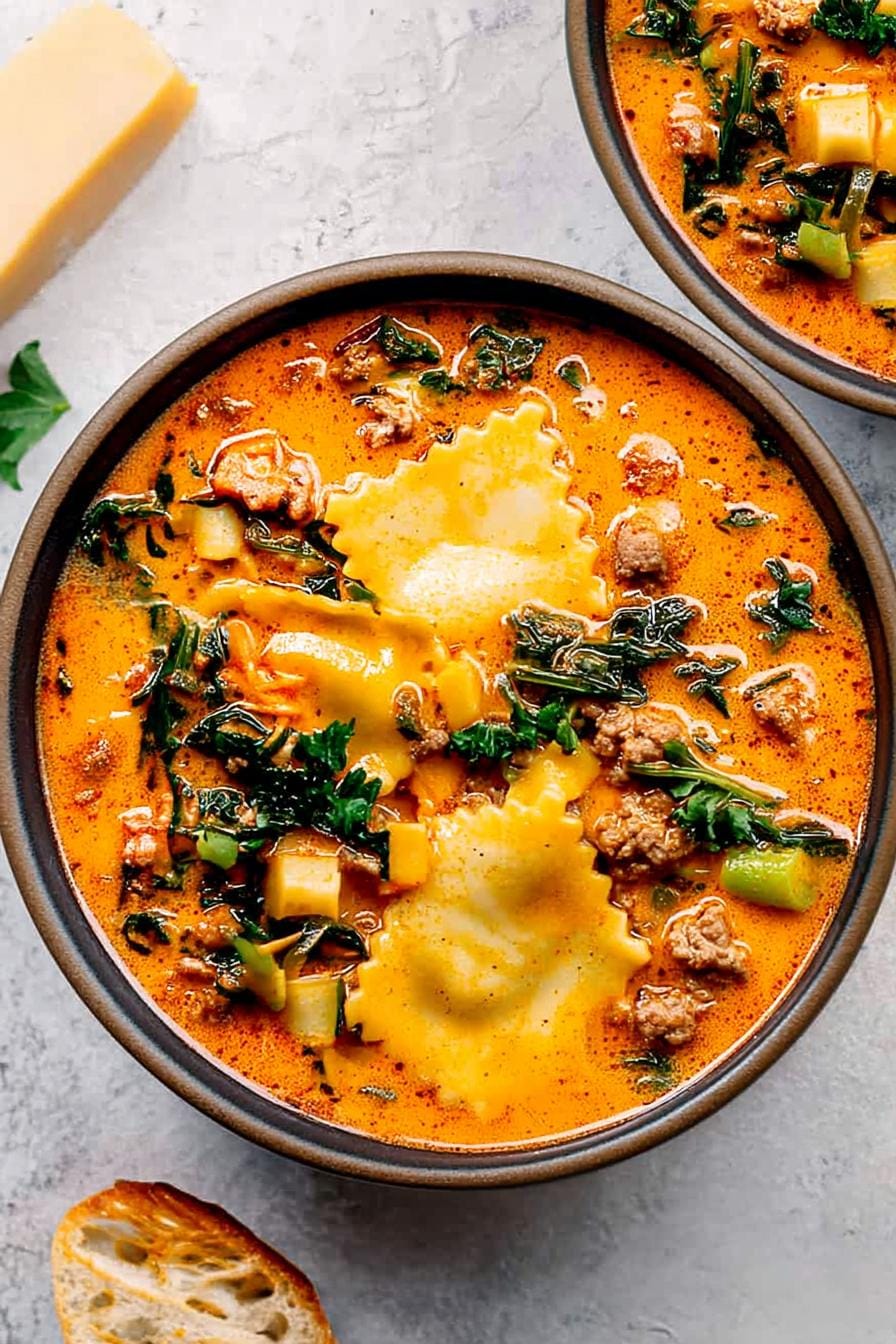 - Is this soup dairy-free or gluten-free friendly? To make it gluten-free, use GF ravioli. For dairy-free, swap cream for coconut milk, though the flavor shifts slightly.