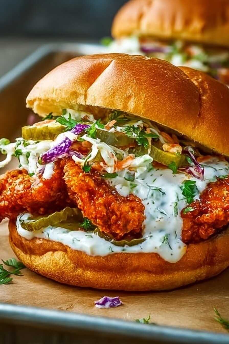 To sum it up, the Crispy Buffalo Chicken Sandwich with Ranch Slaw effortlessly tackles the dilemma of what to make on hectic days. It’s a feast that’s not just convenient but also indulgently tasty. I invite you to try this dish and share your own cooking stories in the comments!