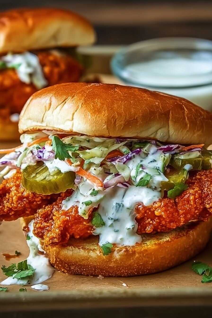 Crispy Buffalo Chicken Sandwich with Ranch Slaw