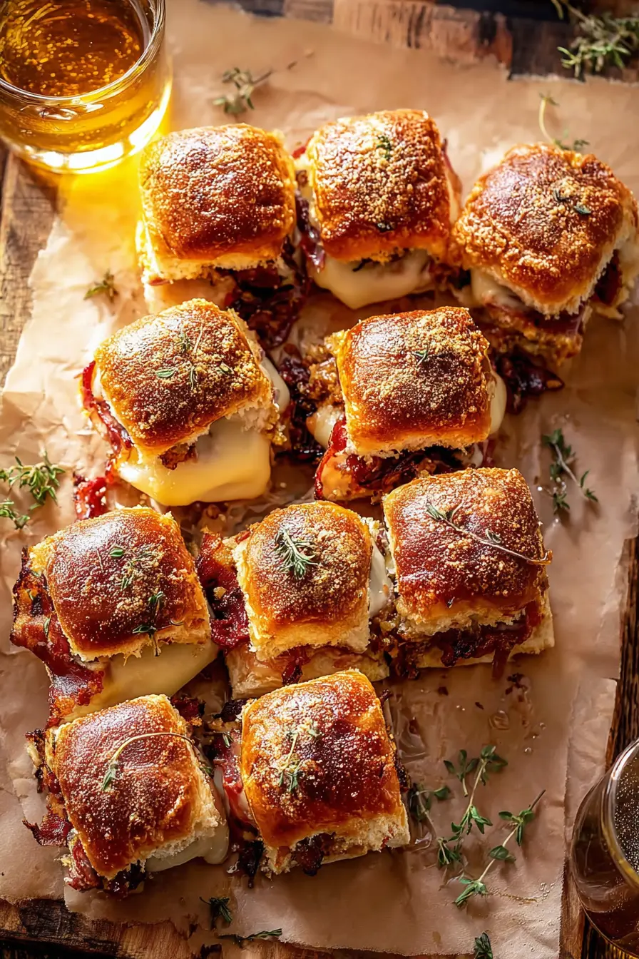 - Brush the tops of the assembled sliders with melted butter mixed with herbs.