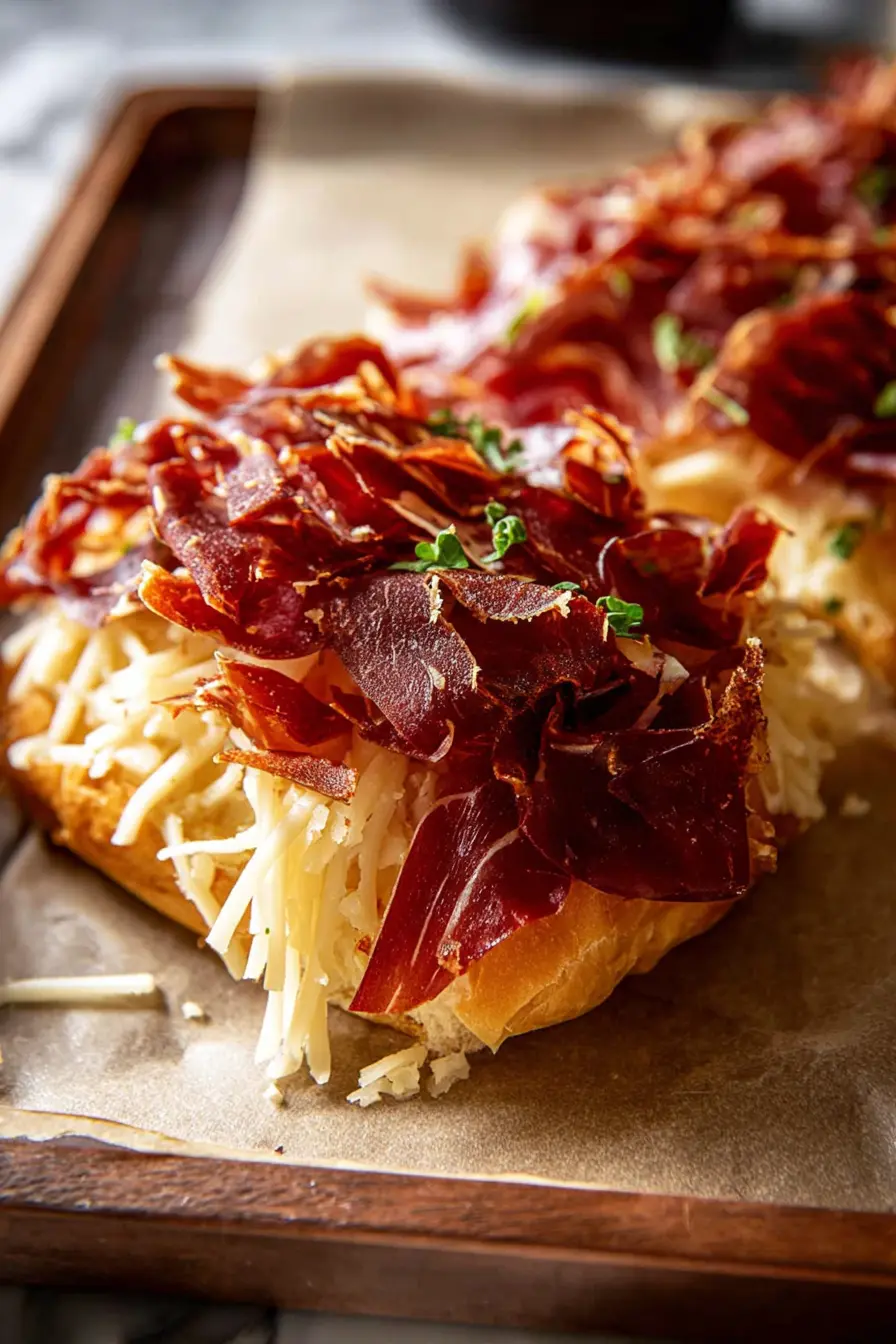- Layer the prosciutto and cheese generously between each bun, ensuring every bite is packed with flavor.