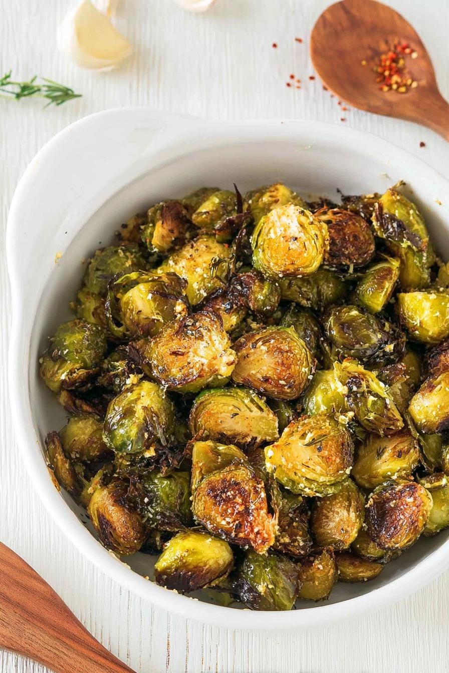 About Crispy Roasted Garlic Butter Brussel Sprouts