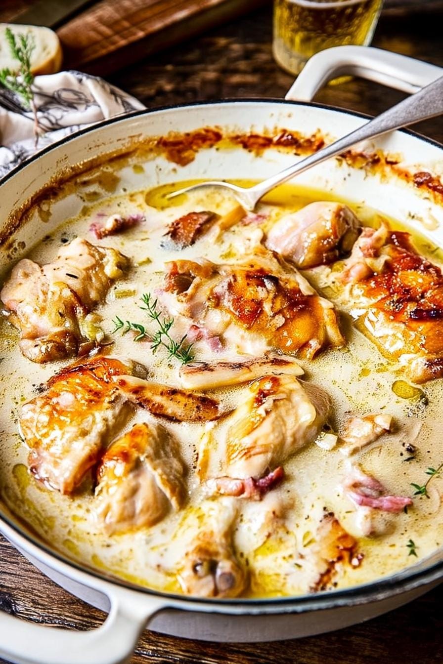 Serve this creamy masterpiece over buttered noodles or alongside crusty baguette slices to mop up every drop. A simple green salad dressed in tangy vinaigrette cuts through the richness, while steamed haricots verts bring a vibrant crunch to the plate.