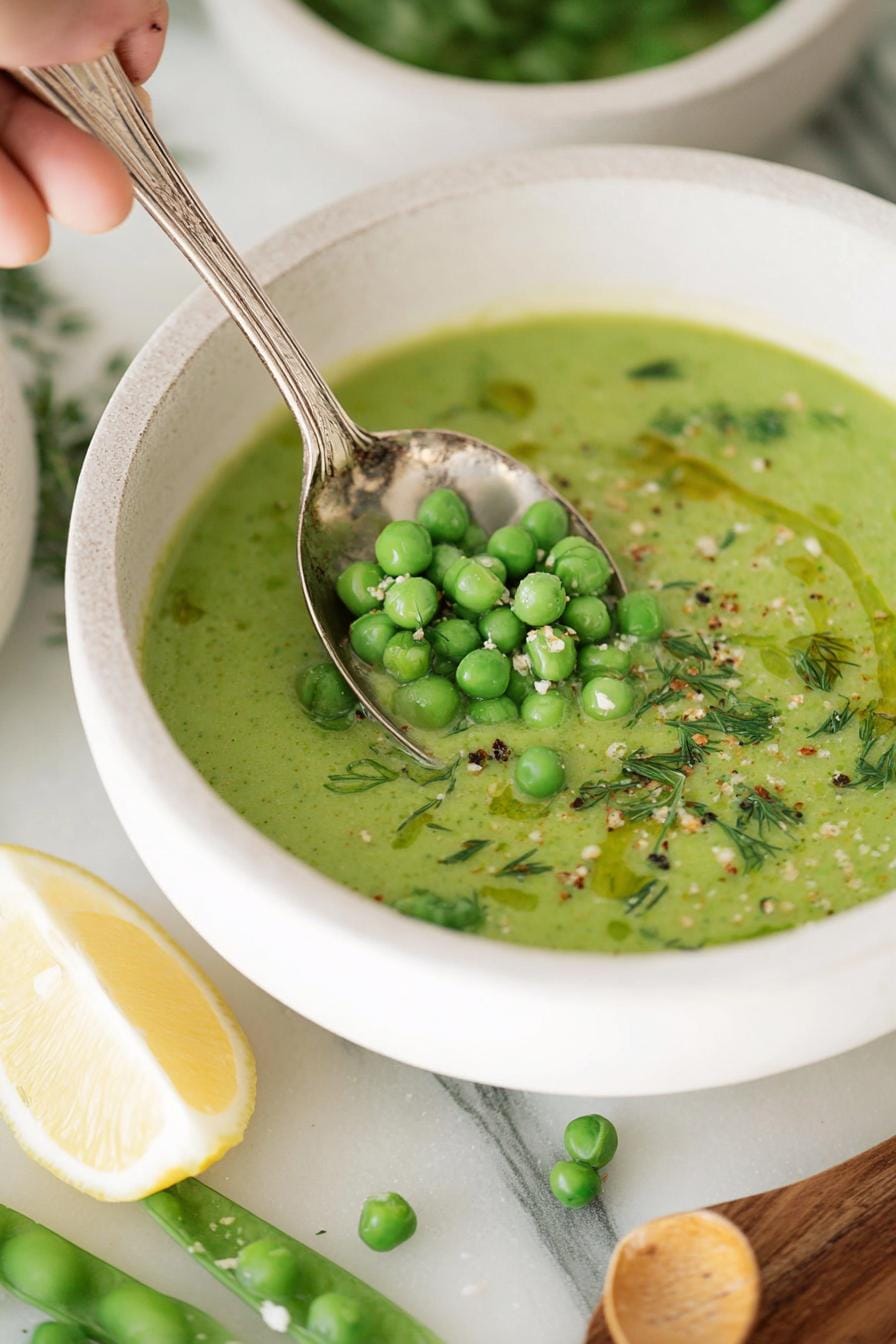 This Fresh Pea Soup pairs beautifully with crusty bread or a light salad, such as my Winter Salad. For a fun twist, try topping it with a dollop of dairy-free yogurt or a sprinkle of toasted nuts for added texture.