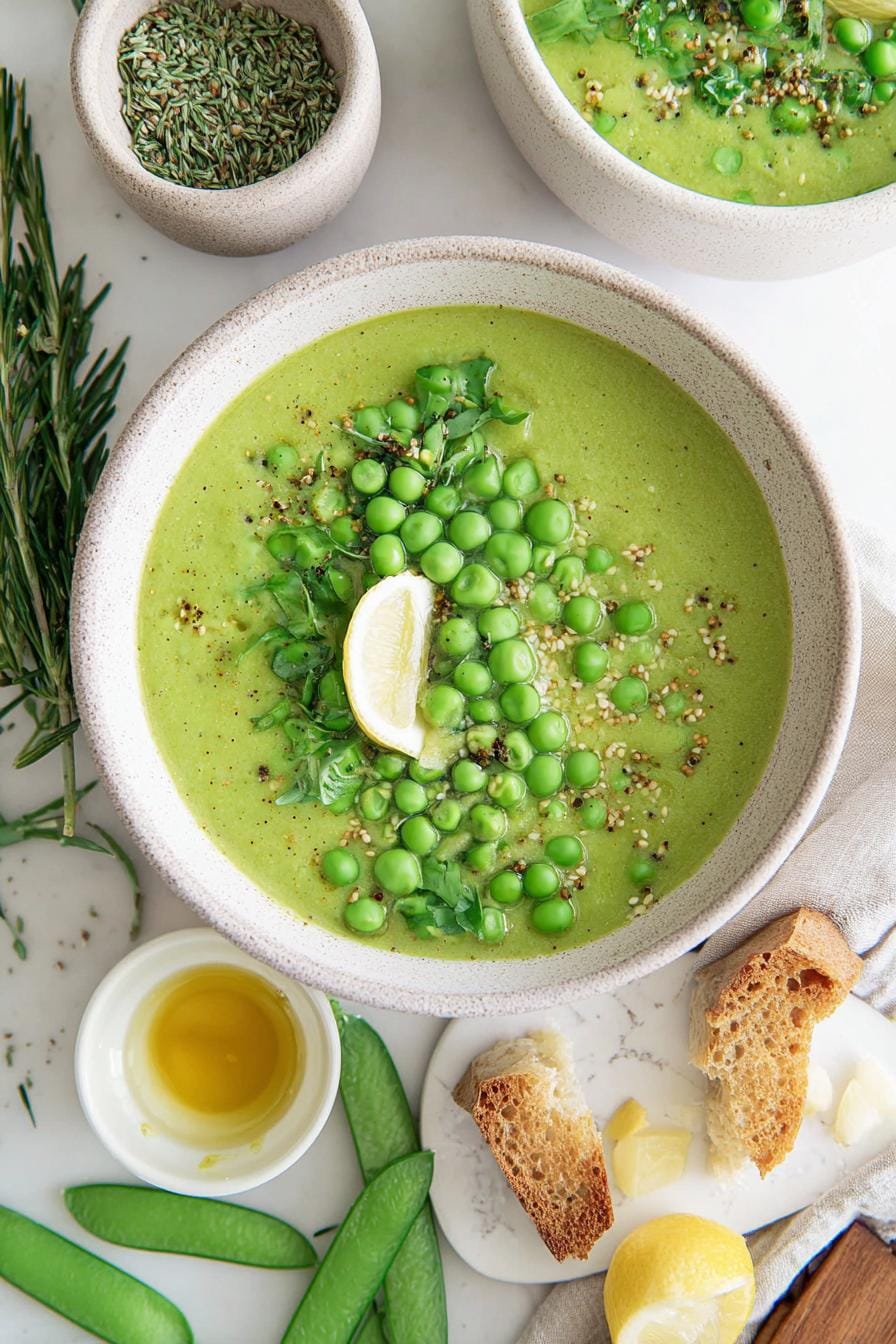 - Creamy Vegetable Soup – a delightful blend of seasonal vegetables that complements the freshness of peas.