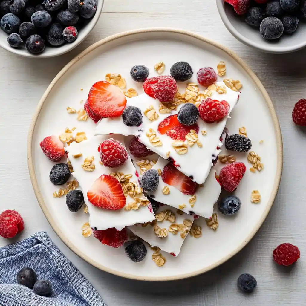 - Greek Yogurt – Creamy, tangy, and packed with protein, it’s the base of the bark.