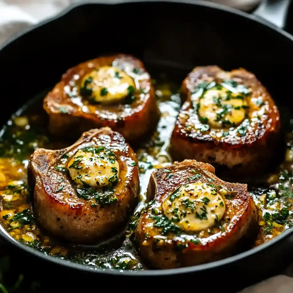 - Rest & serve: Let chops rest for 5 minutes before serving, topped with garlic butter sauce.