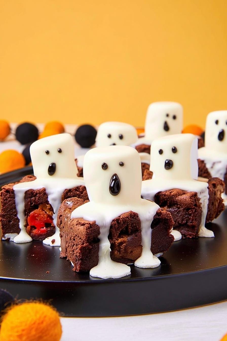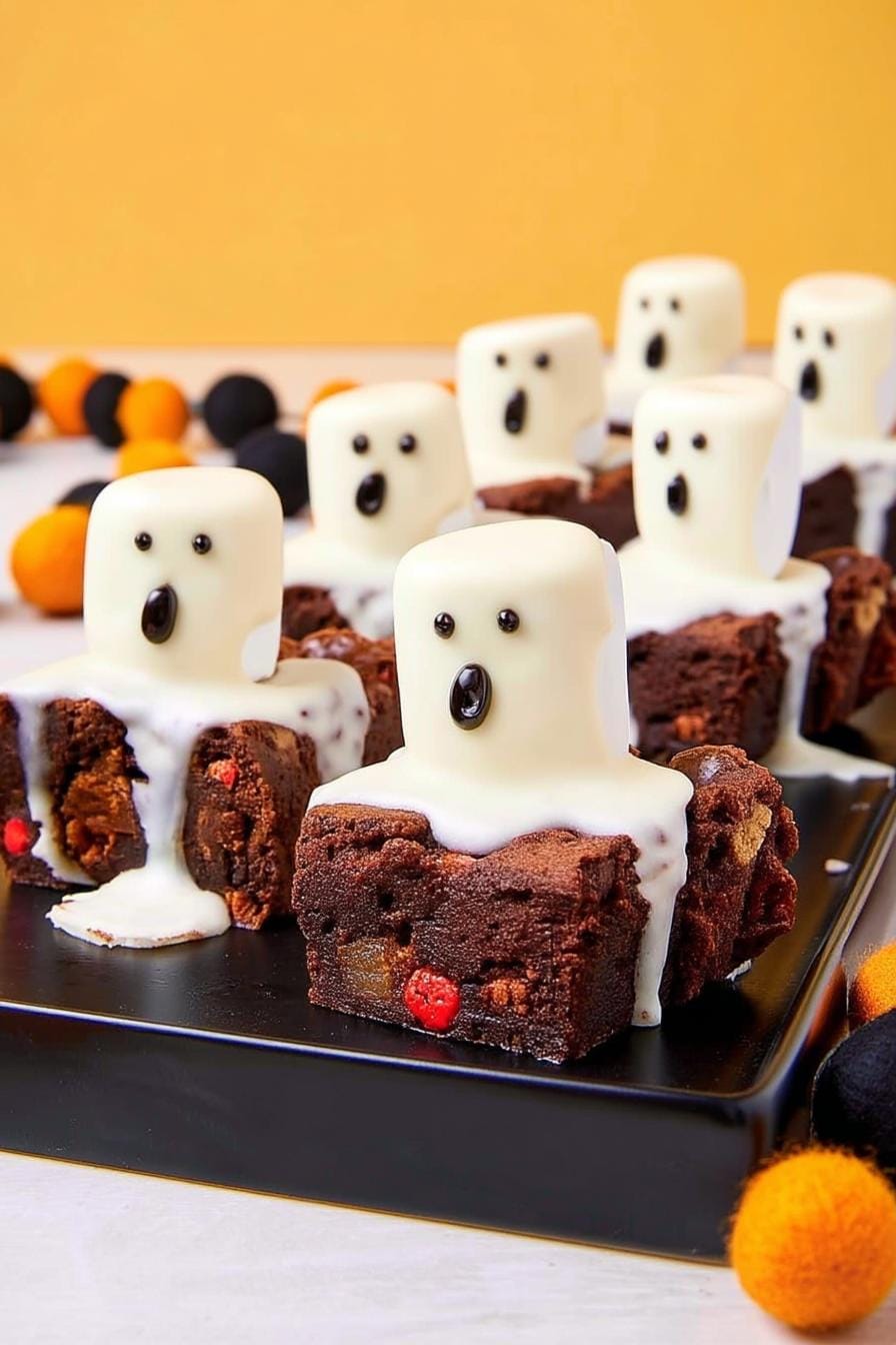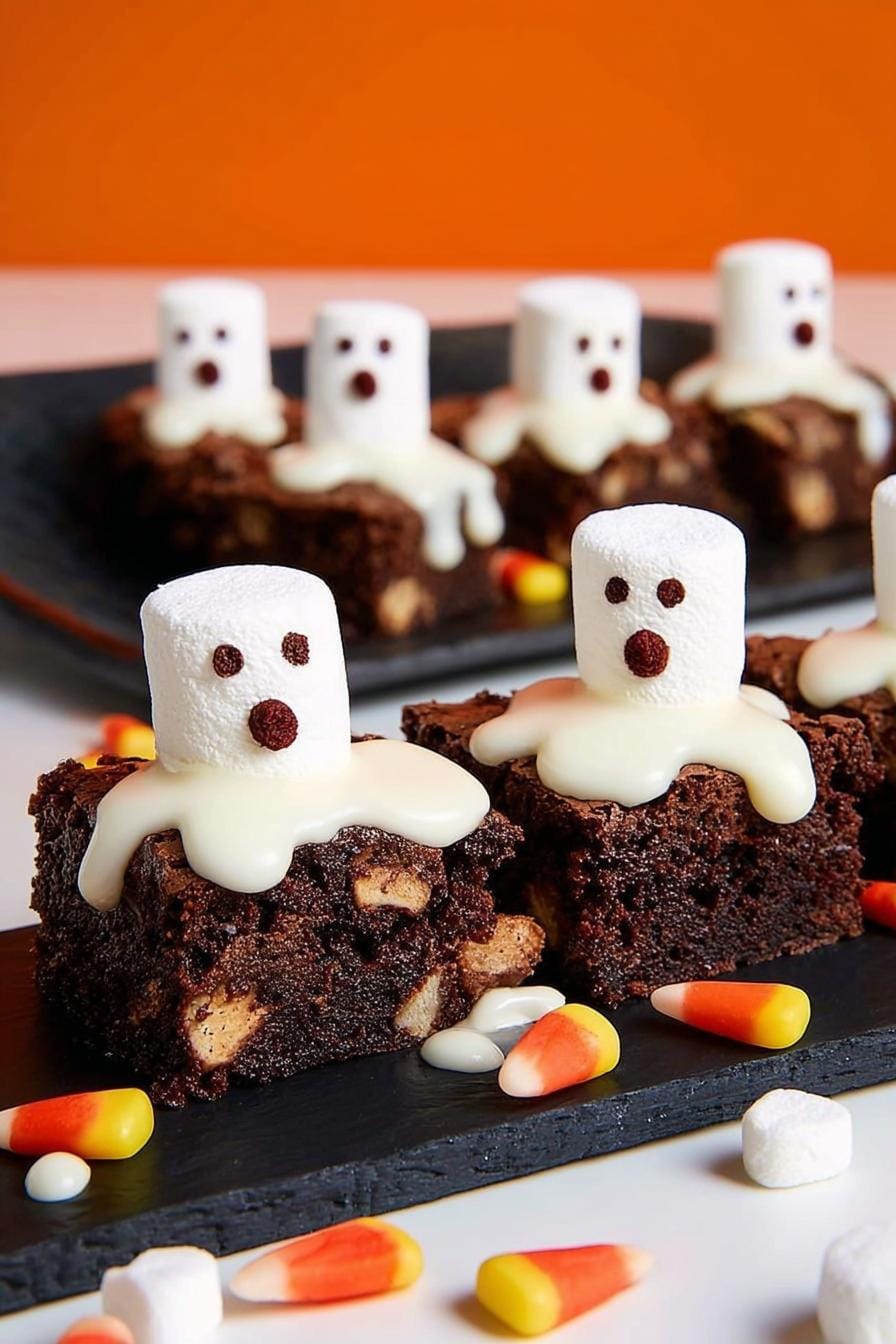 - How do I prevent marshmallow ghosts from slipping? Chill the cooled brownies for 10 minutes before pressing in marshmallow halves to give them extra grip.