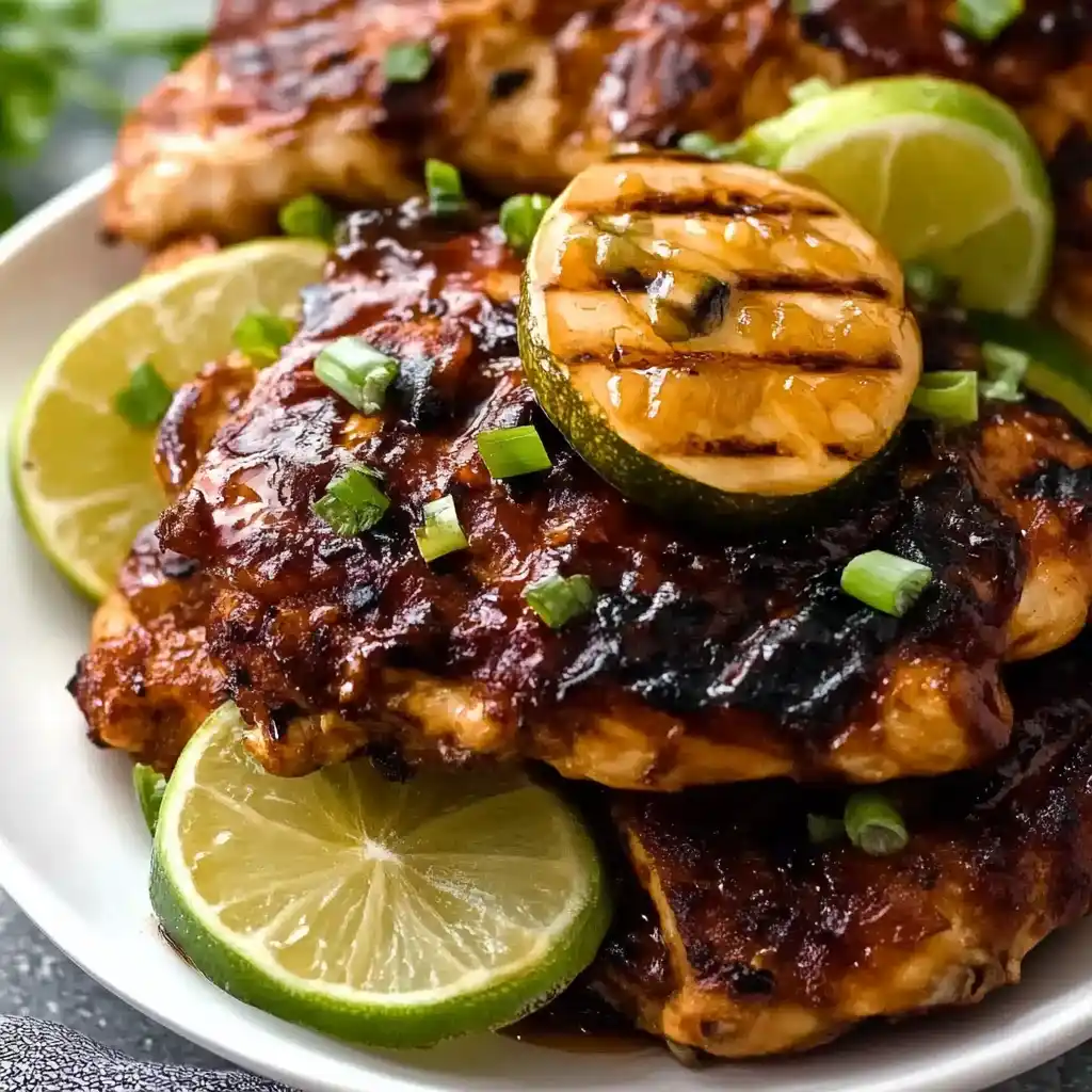 - Assemble Stacks: Layer pineapple slices, grilled chicken, drizzle extra sauce, and garnish with green onions and lime wedges.