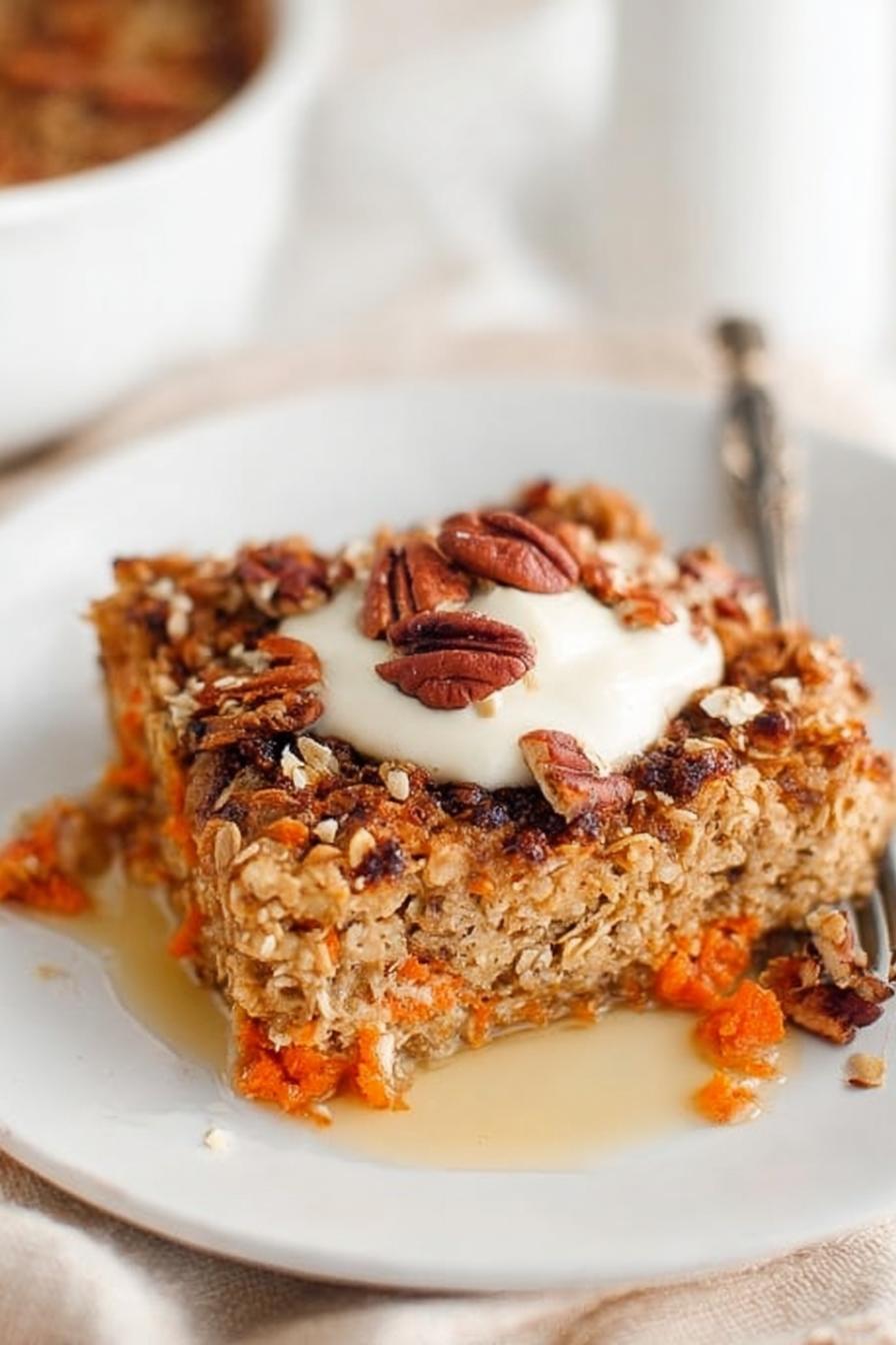 This Healthy Carrot Cake Baked Oatmeal can be stored in the fridge for up to 5 days. For longer storage, freeze it in an airtight container for up to 3 months. Reheat individual portions in the microwave for about 1-2 minutes or in the oven at 350°F (175°C) for 10-15 minutes. During testing, I found that it keeps surprisingly well, maintaining its texture and flavor.
