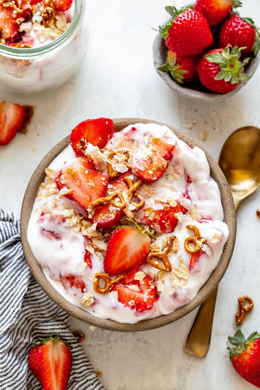 How to Make High-Protein Strawberry Pretzel Salad Bowl