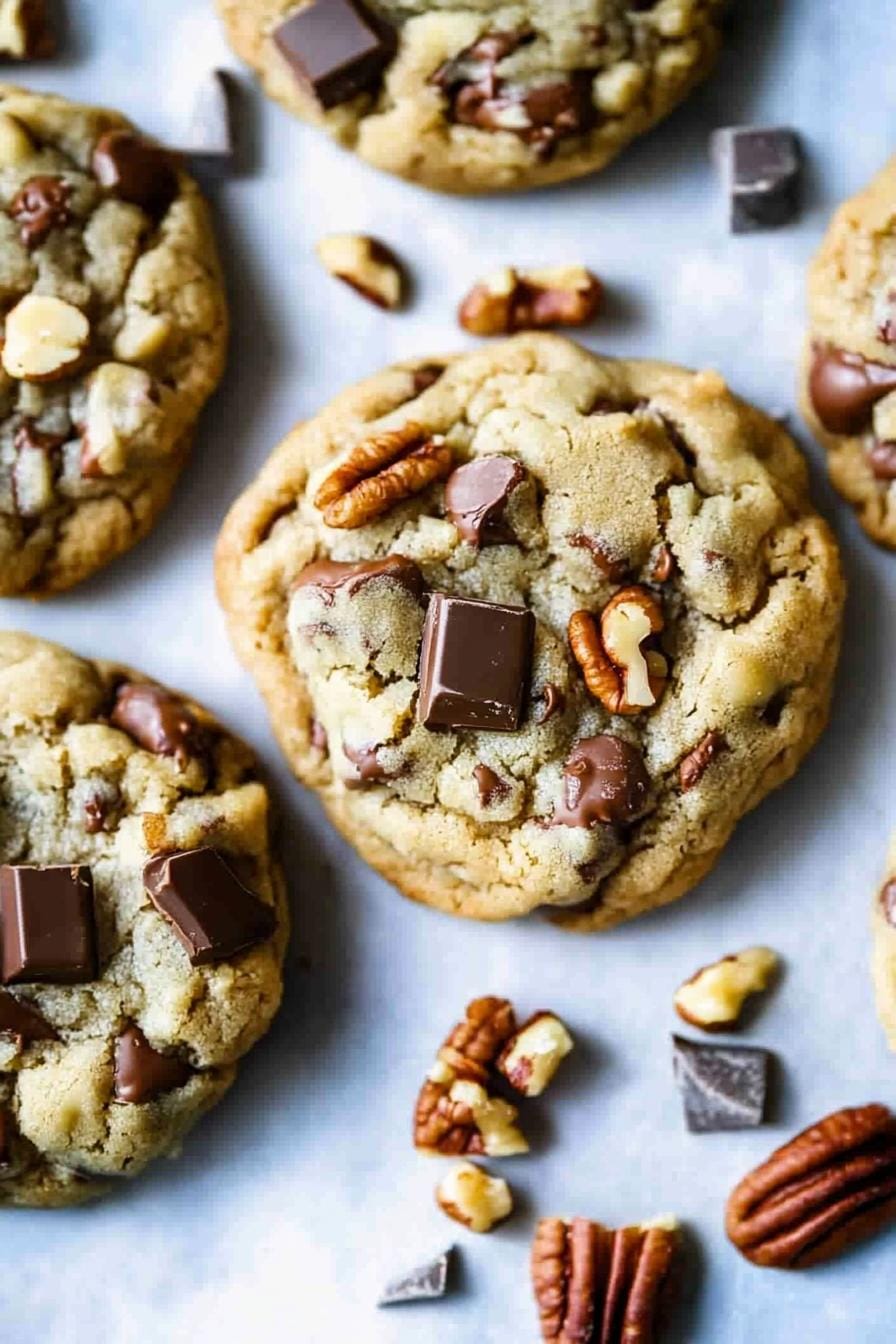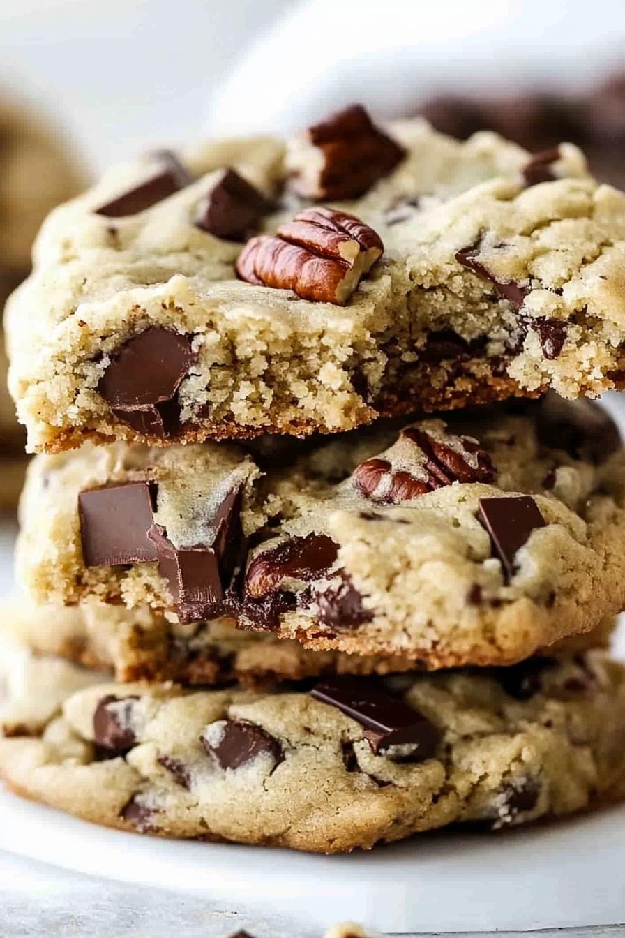 My first batch came from a late-night craving and a hurried mix of ingredients. I quickly realized that upping the oven to 375°F locks in those chewy middles while crisping the edges. Chocolate chips were born in the 1930s, and pecans have been treasured in the American South for centuries. Through trial, I learned that coarsely chopping and lightly toasting the nuts (5 minutes at 350°F) amplifies their aroma and texture.