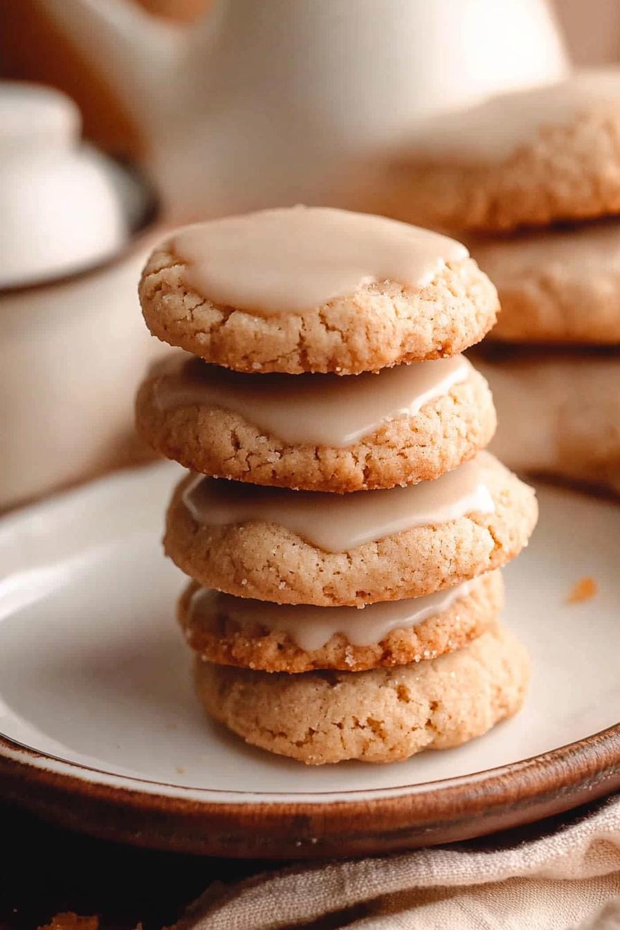 Store cooled, glazed cookies in an airtight container at room temperature up to 3 days. For longer life, layer parchment between cookies and freeze up to 3 months; thaw at room temp 30 minutes before serving. Always cool cookies completely before glazing to prevent sogginess, and refrigerate any leftover glaze in a sealed jar up to 1 week. Follow food safety by discarding cookies left out over 24 hours.