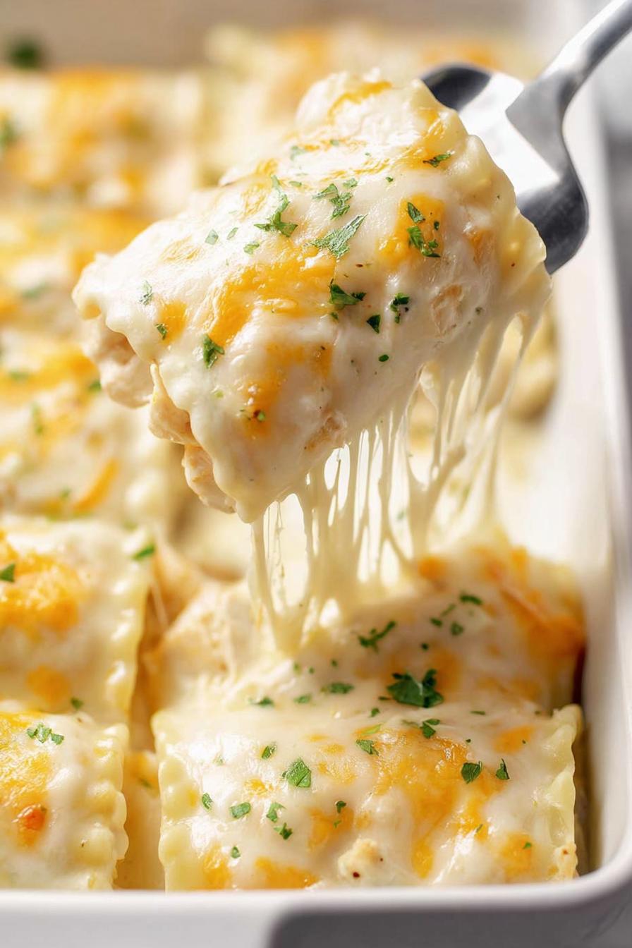 - How do I reheat leftovers without drying them out? Cover with foil and heat at 350°F for 10–12 minutes; add a spoonful of Alfredo on top if needed.