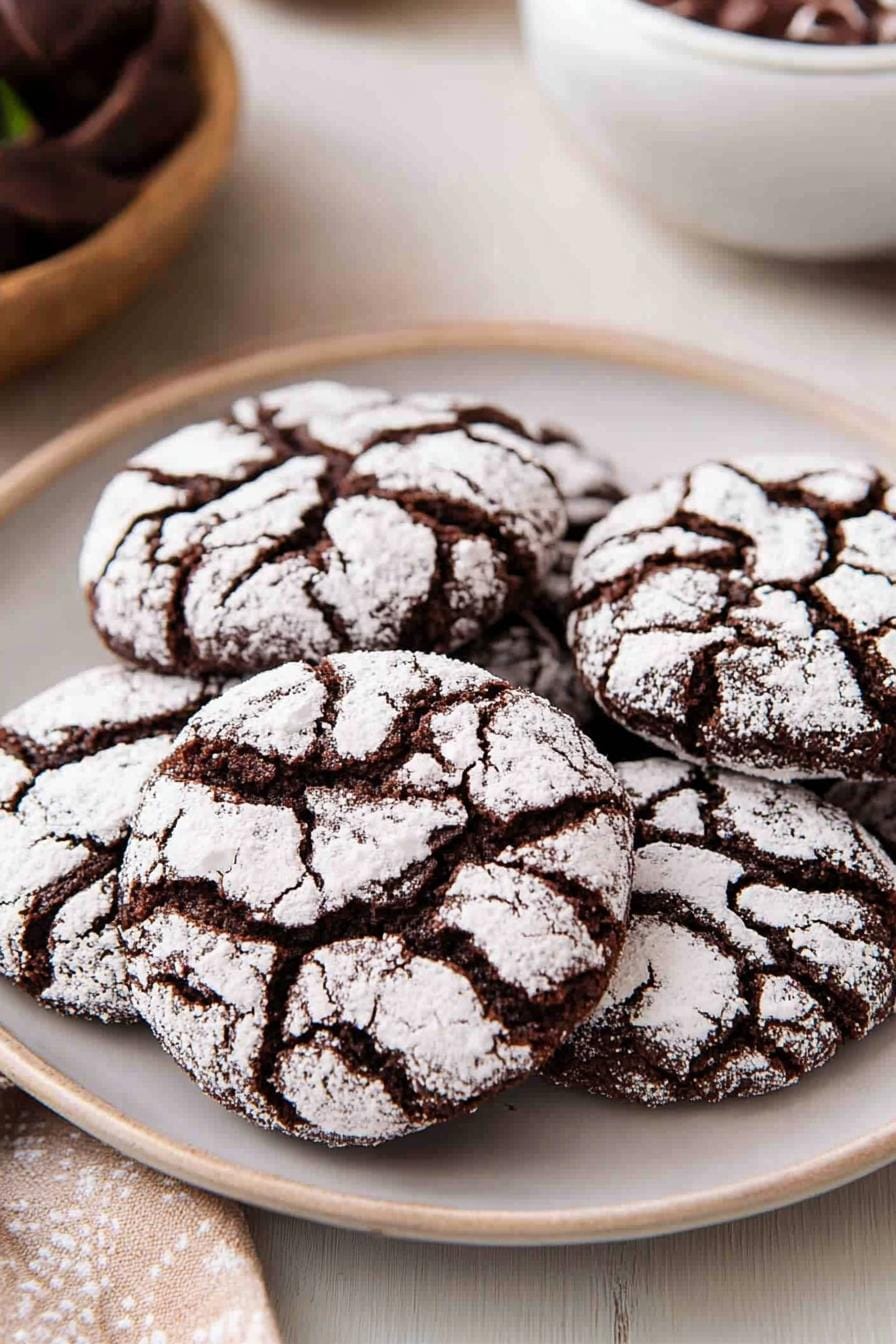 - Can I freeze chocolate crinkle cookie dough? Yes—shape and roll in powdered sugar, then freeze on a tray. Once solid, transfer to a bag and bake from frozen, adding 1–2 min to bake time.
