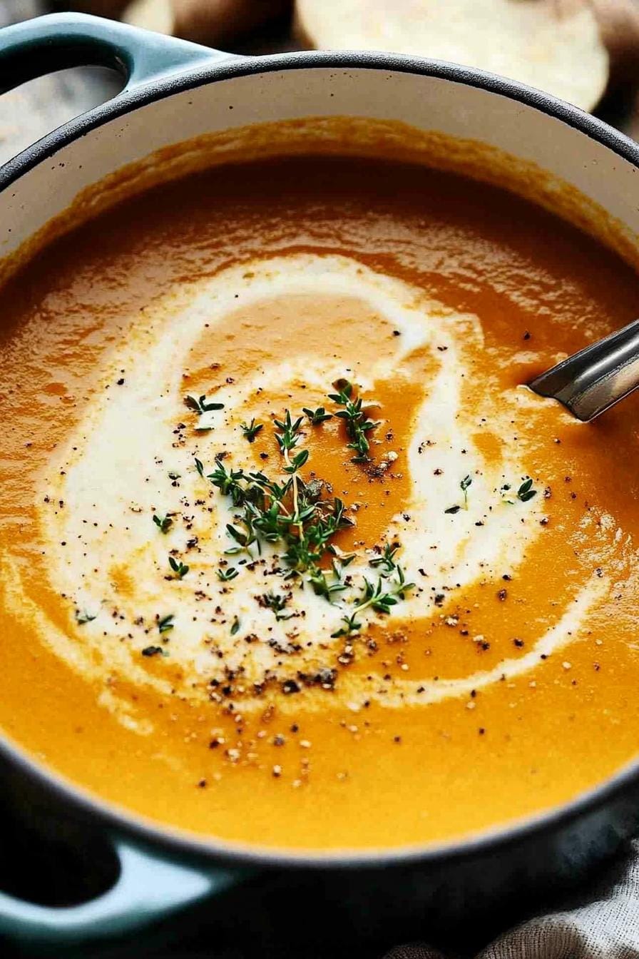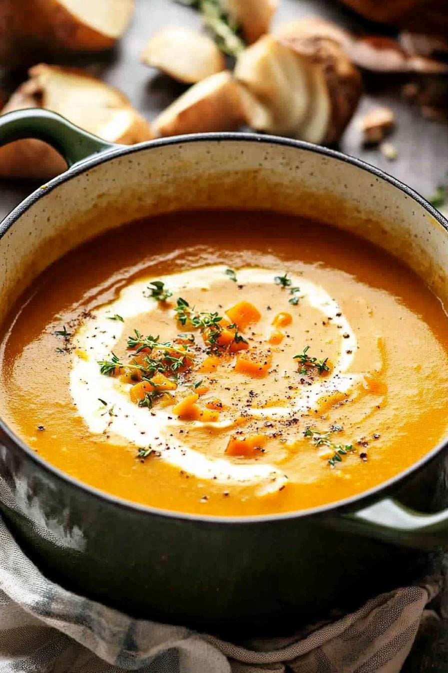 Garnish with a swirl of cream and a sprinkle of crispy sage leaves or toasted pumpkin seeds. Serve alongside crusty sourdough or a sharp cheddar to balance the soup’s mellow sweetness.