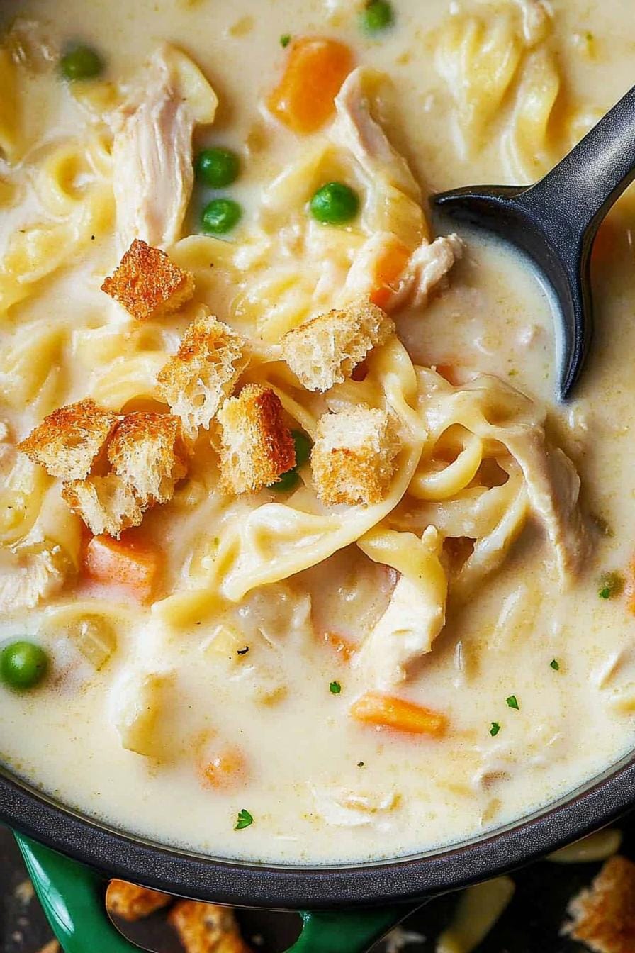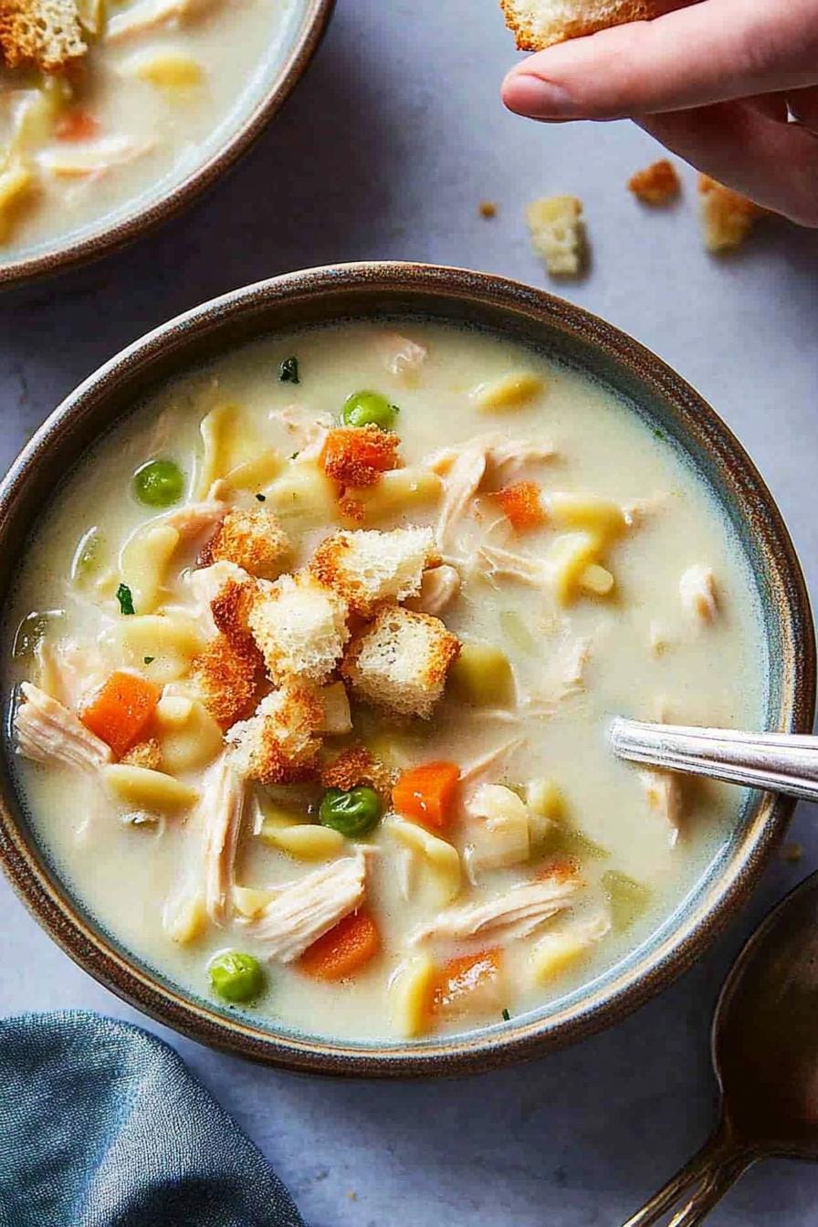 Why You’ll Love Creamy chicken noodle soup with mini croutons