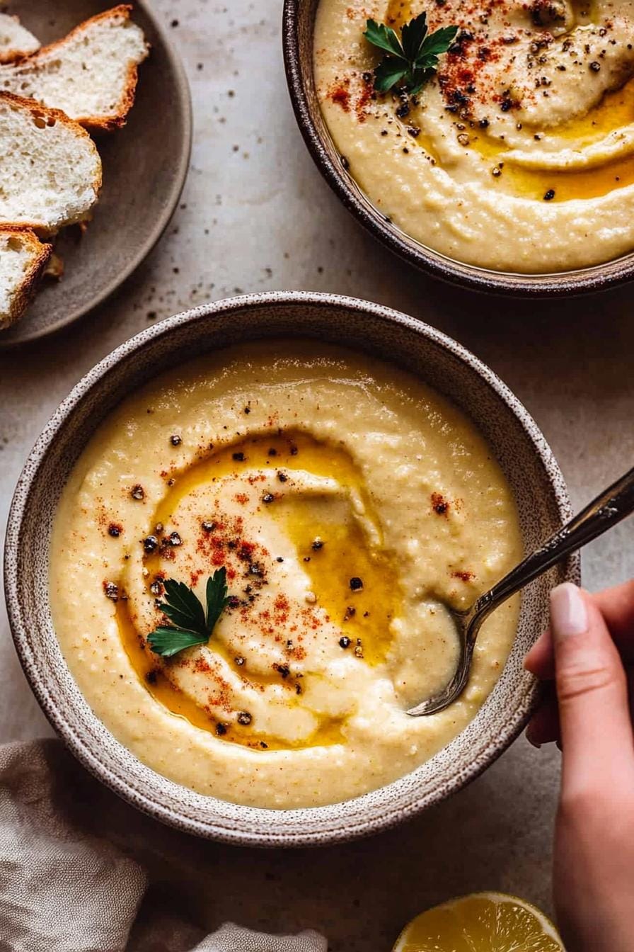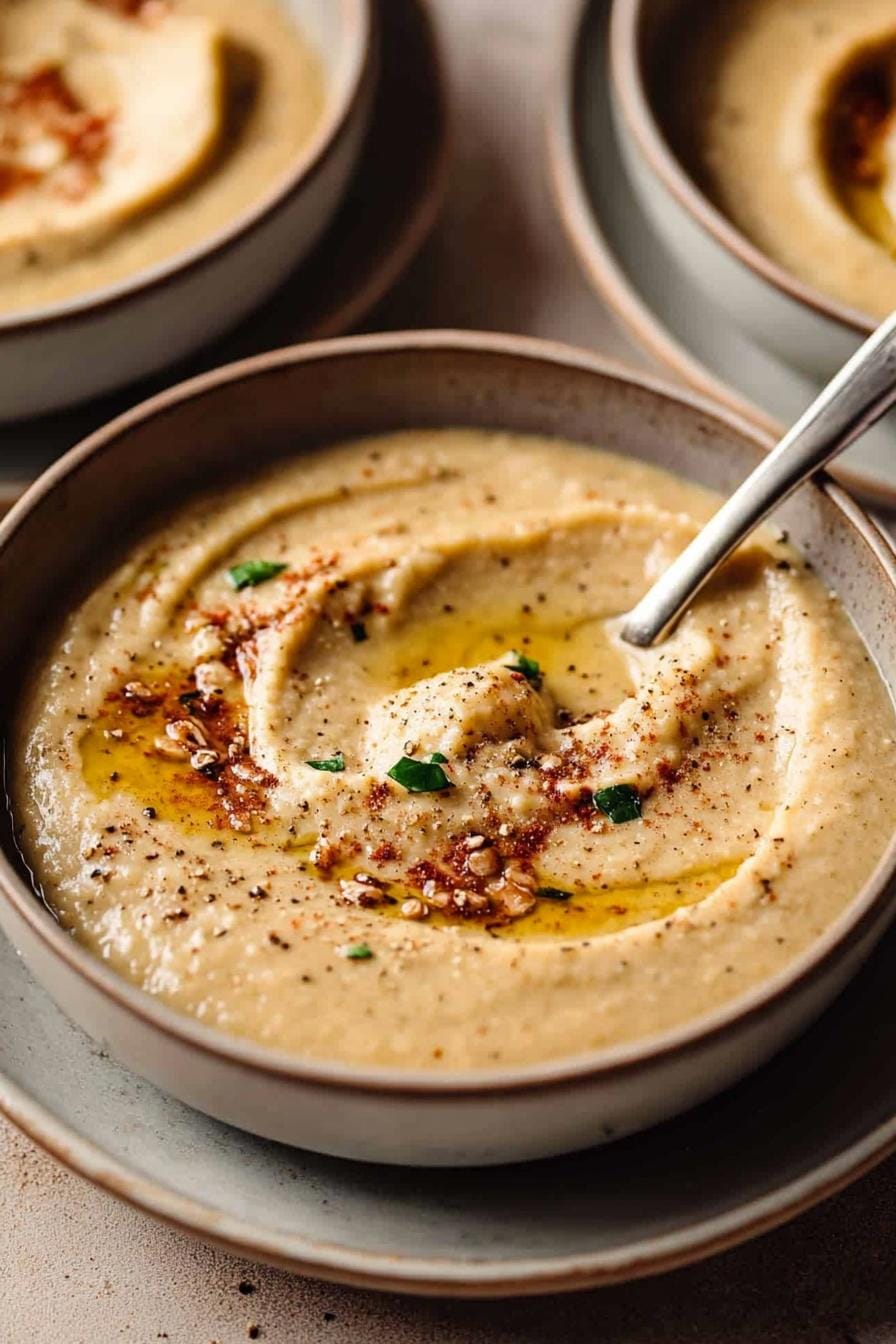 Garnish with chopped chives, a drizzle of olive oil, and a crack of black pepper. Serve with crusty bread or a crisp green salad for contrast. I love it alongside roasted chickpeas for added crunch.