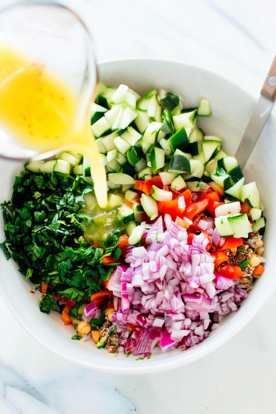 - Pour dressing over warm quinoa, add prepared vegetables, herbs and olives. Gently toss until everything is coated in a glossy sheen. Let the salad rest at least 30 minutes at room temperature to allow flavors to meld—this pause makes all the difference.