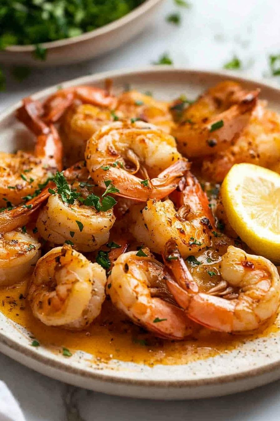 Leftover Garlic Prawns (Shrimp) keep best in an airtight container in the fridge for up to 2 days—store within 2 hours of cooking for food safety. Reheat gently over low heat for 1–2 minutes or microwave at 50% power in 30-second bursts to avoid rubbery texture. Avoid freezing as the butter sauce can separate on thawing.