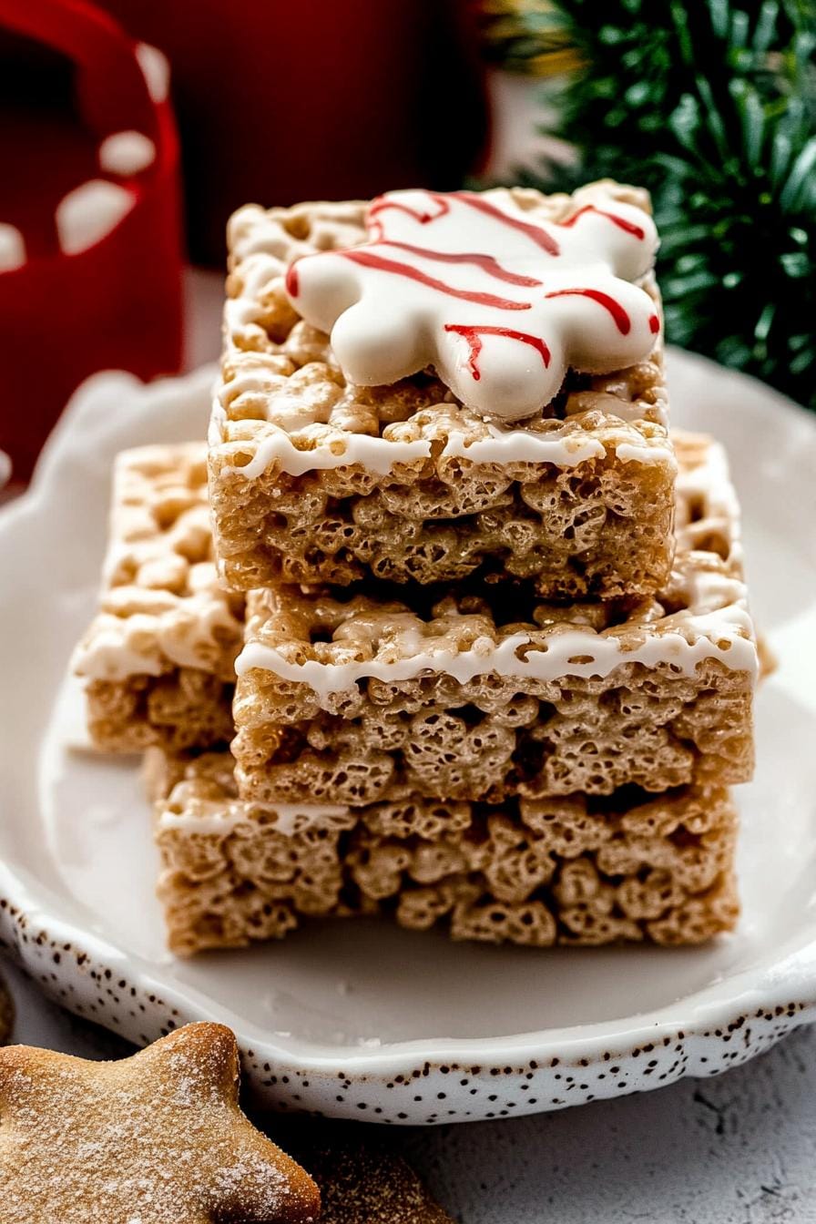 - Can I make Gingerbread Rice Krispie Treats ahead? Yes—mold, cool, wrap individually, and freeze for up to a month; thaw at room temperature before serving.