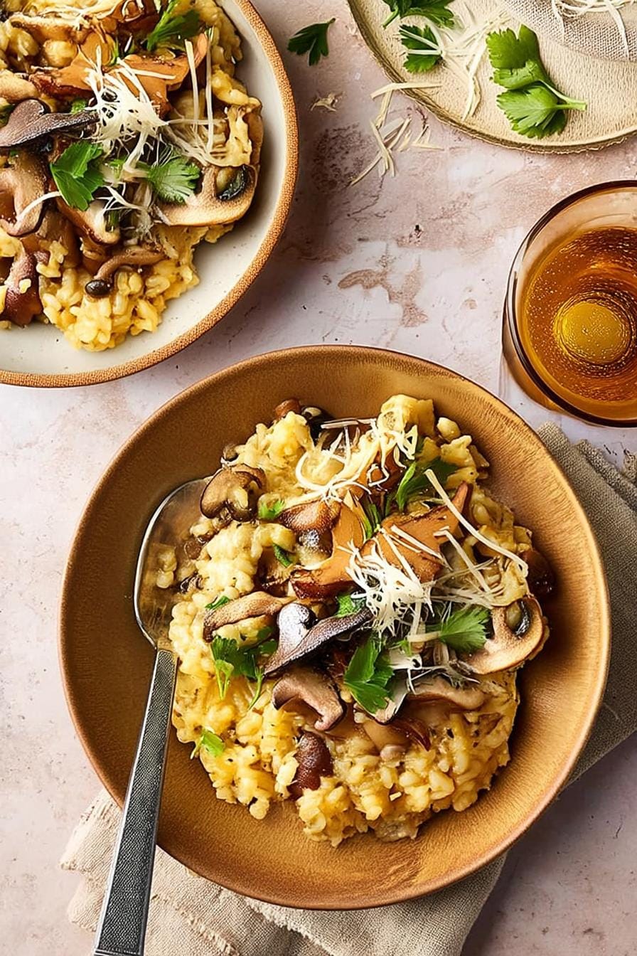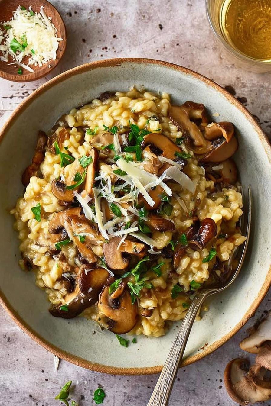 Serve Mushroom Risotto topped with extra Parmesan and a sprinkle of bright parsley. Pair it with a crisp green salad, roasted asparagus, or grilled lemon chicken for a balanced meal. A drizzle of truffle oil amps up the earthiness if you’re feeling indulgent.