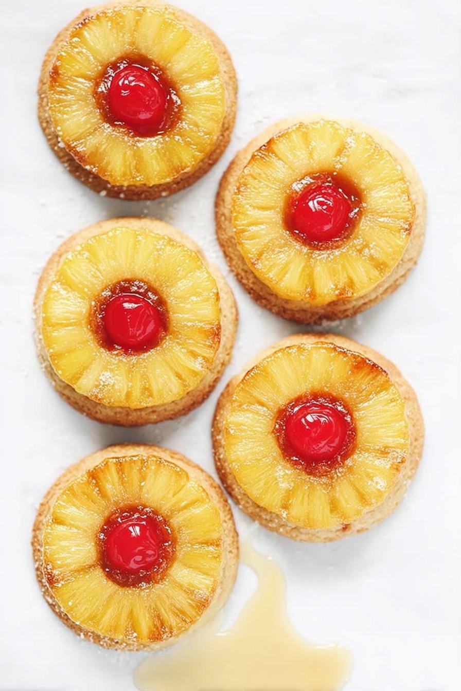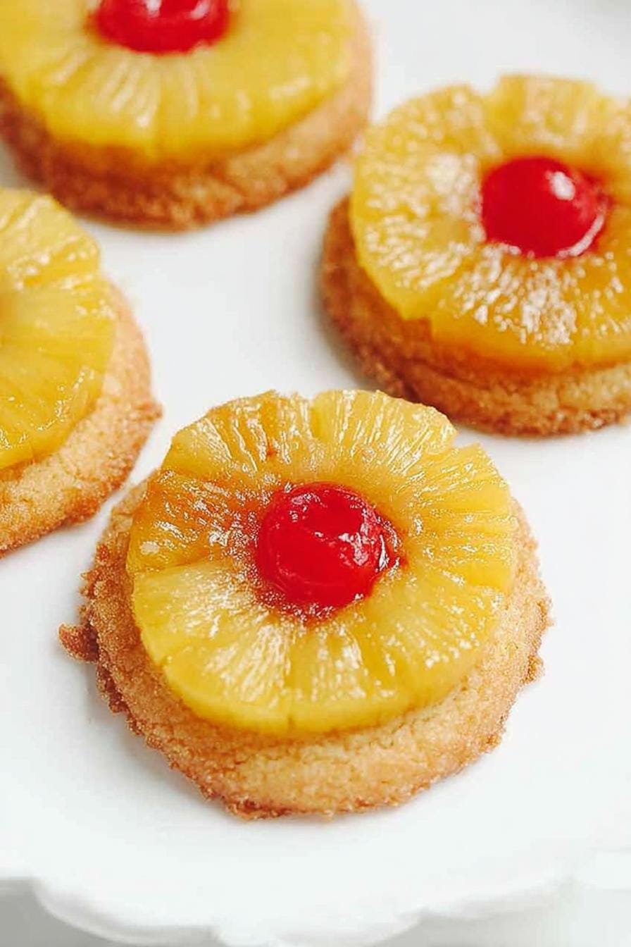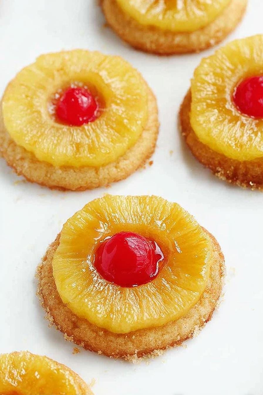 I’ve enjoyed the journey of perfecting Pineapple Upside Down Sugar Cookies in my kitchen, and these bites are now my go-to. They bring tropical flair to cookie swaps or weeknight treats—especially when you press a glossy ring of pineapple on top. Give them a try, then share your favorite fruit tweaks in the comments below!