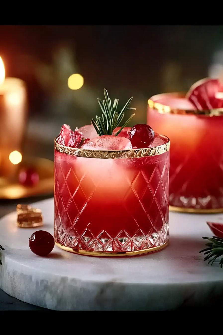 - Garnish with rosemary sprigs and a few floating cranberries before serving.
